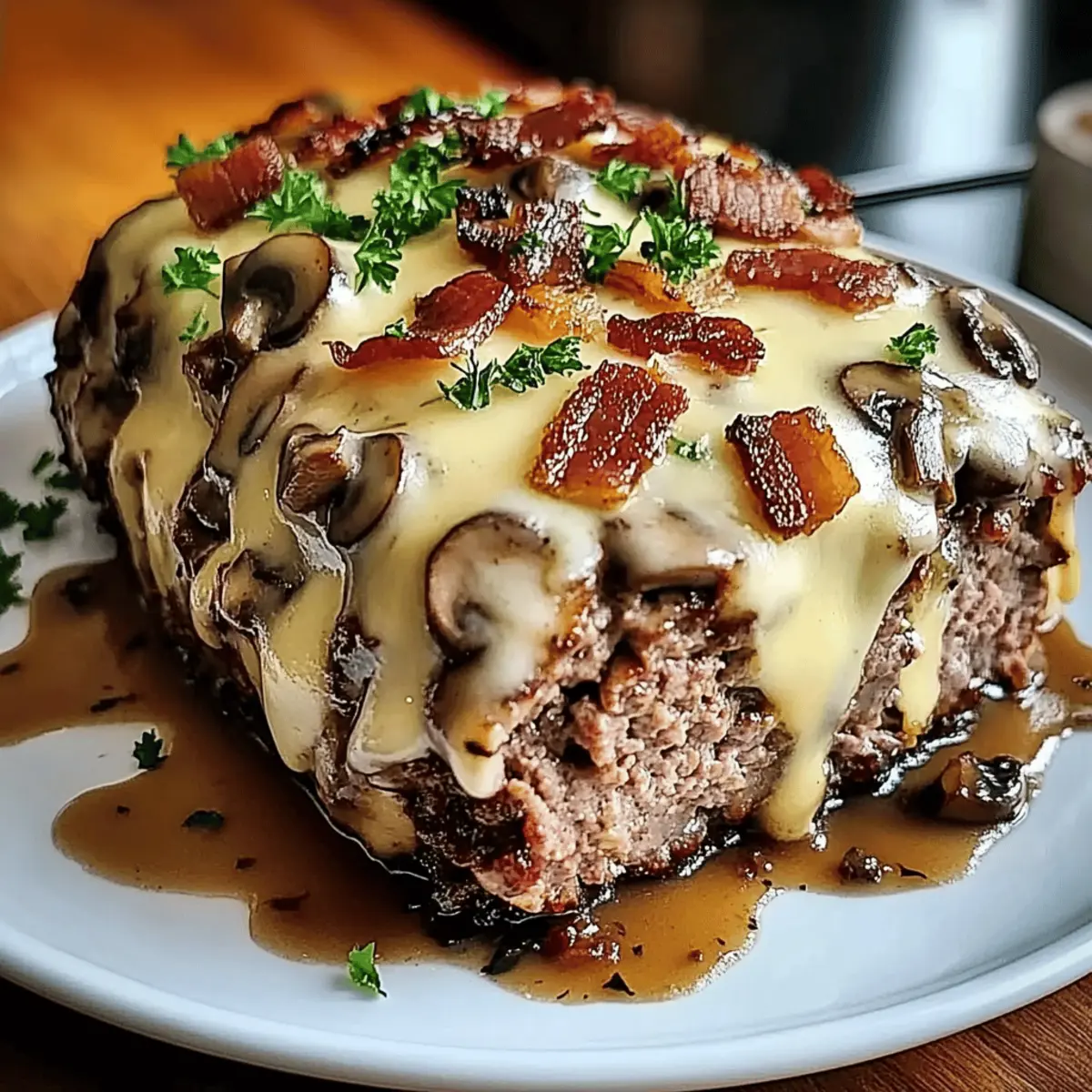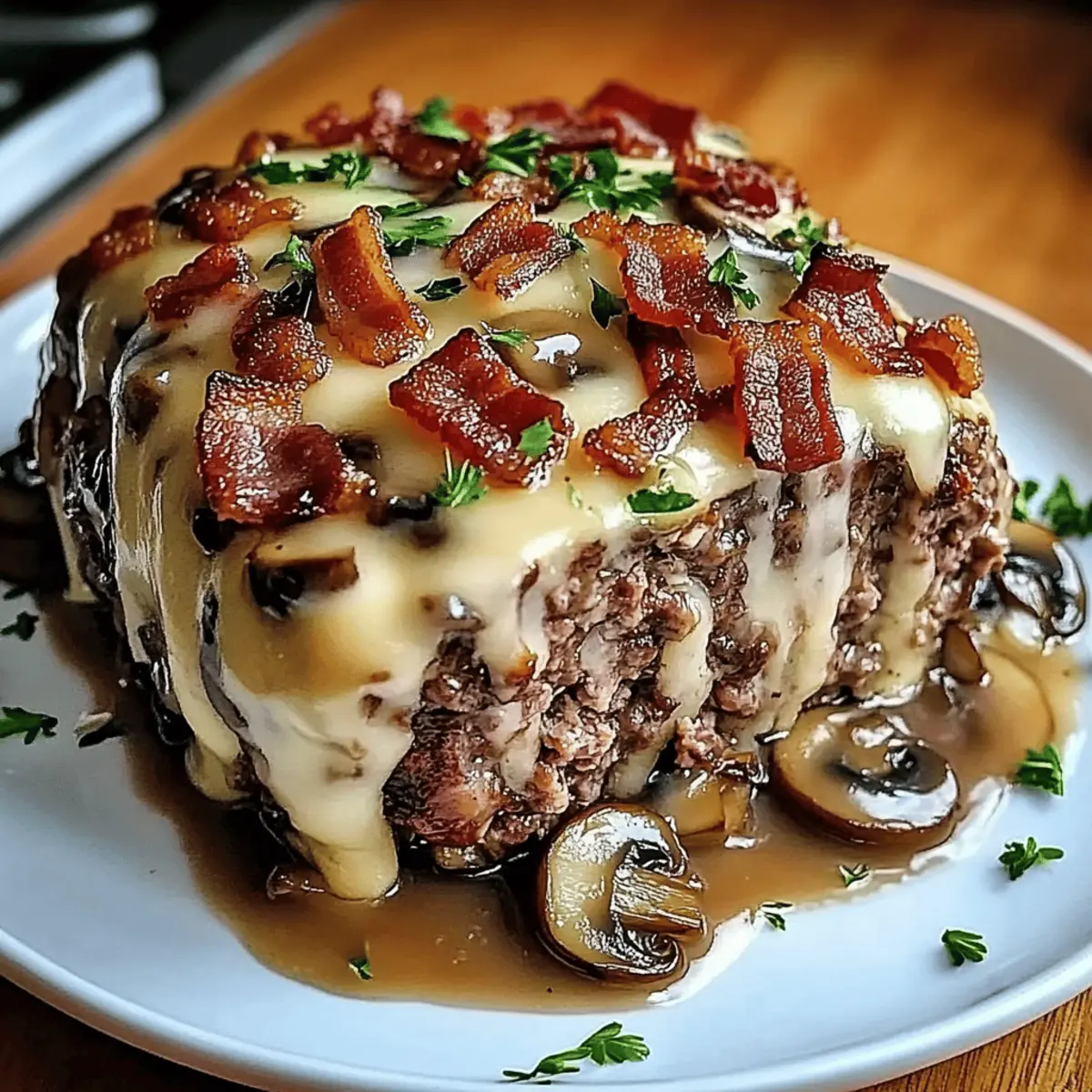 Bacon Mushroom Swiss Cheese Meatloaf That's Comforting Goodness