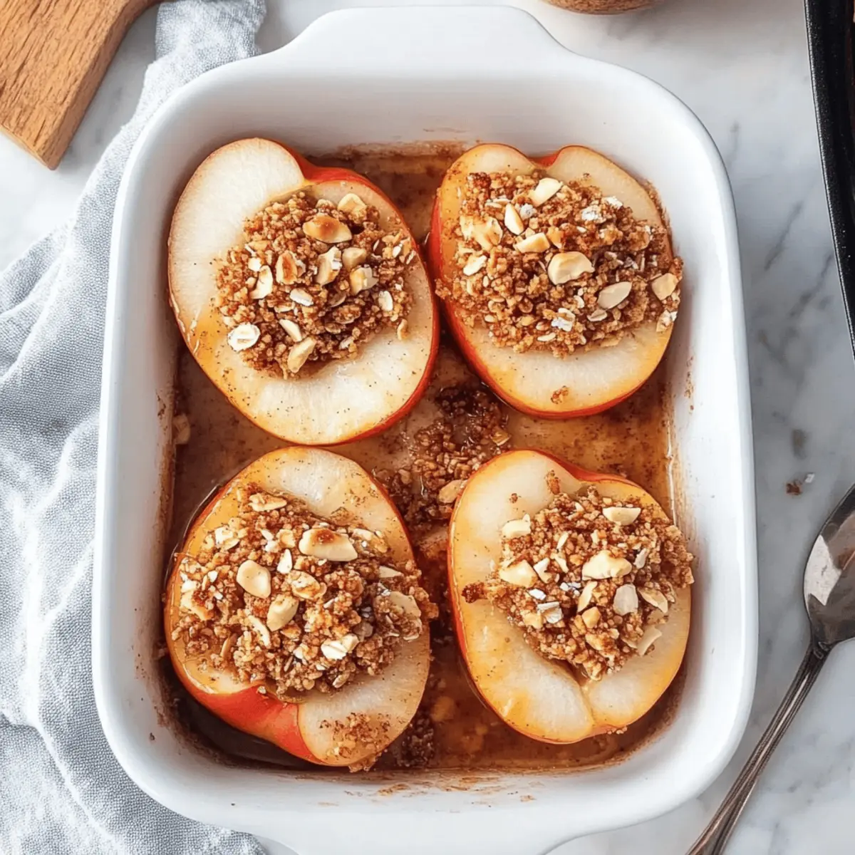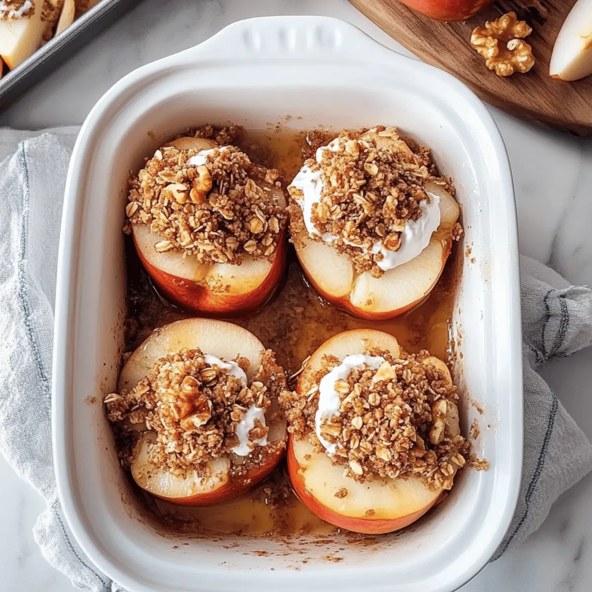I love to add a pinch of nutmeg or a dash of clove to the topping mixture for an extra layer of warmth and flavor. Even toasting the walnuts lightly before mixing them in can elevate the taste, giving your baked apples a delightful depth that pairs beautifully with the cinnamon. Enjoy experimenting with different spices to make it your own!