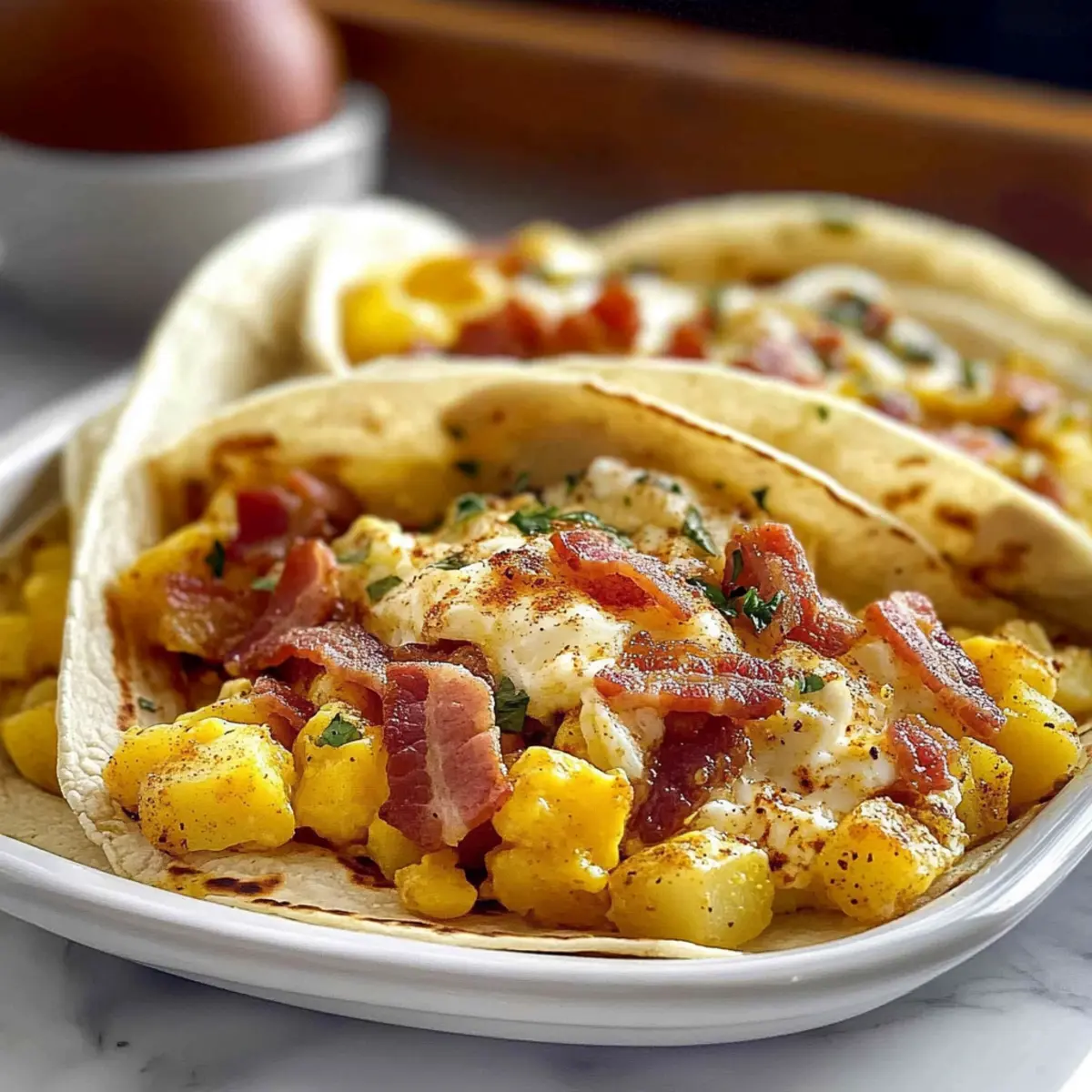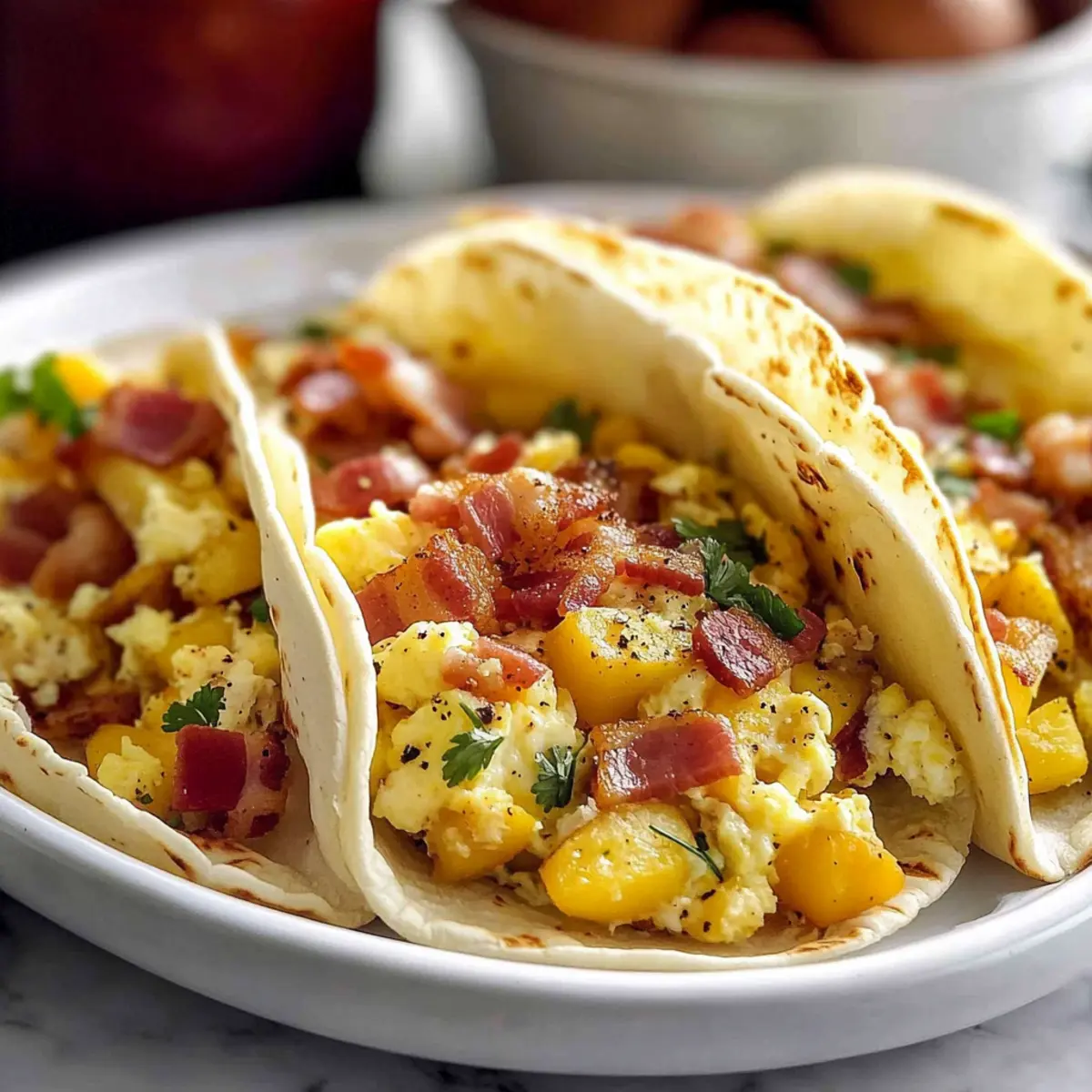 Convenience: Prep them in advance to save precious minutes on busy mornings. Adaptable: You can customize fillings with what you have at home—whether it’s black beans, veggies, or even leftover meats. Flavorful: Each bite features a delightful mix of crispy tortillas and savory ingredients like creamy eggs and crunchy bacon. Family-Friendly: Everyone, from kids to adults, loves tacos for breakfast! These baked breakfast tacos will have your family clamoring for seconds, much like a Croissant Breakfast Sandwich. Enjoy making these delightful treats together, and explore similar breakfast recipes like Banana Blueberry Breakfast tacos for added variety!