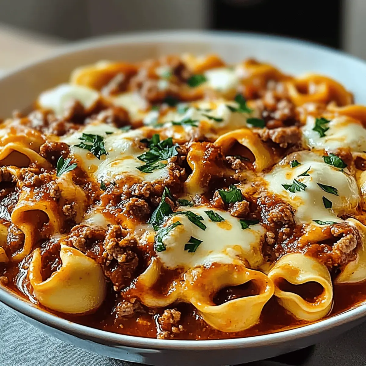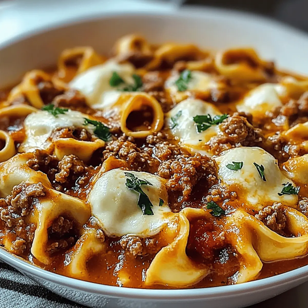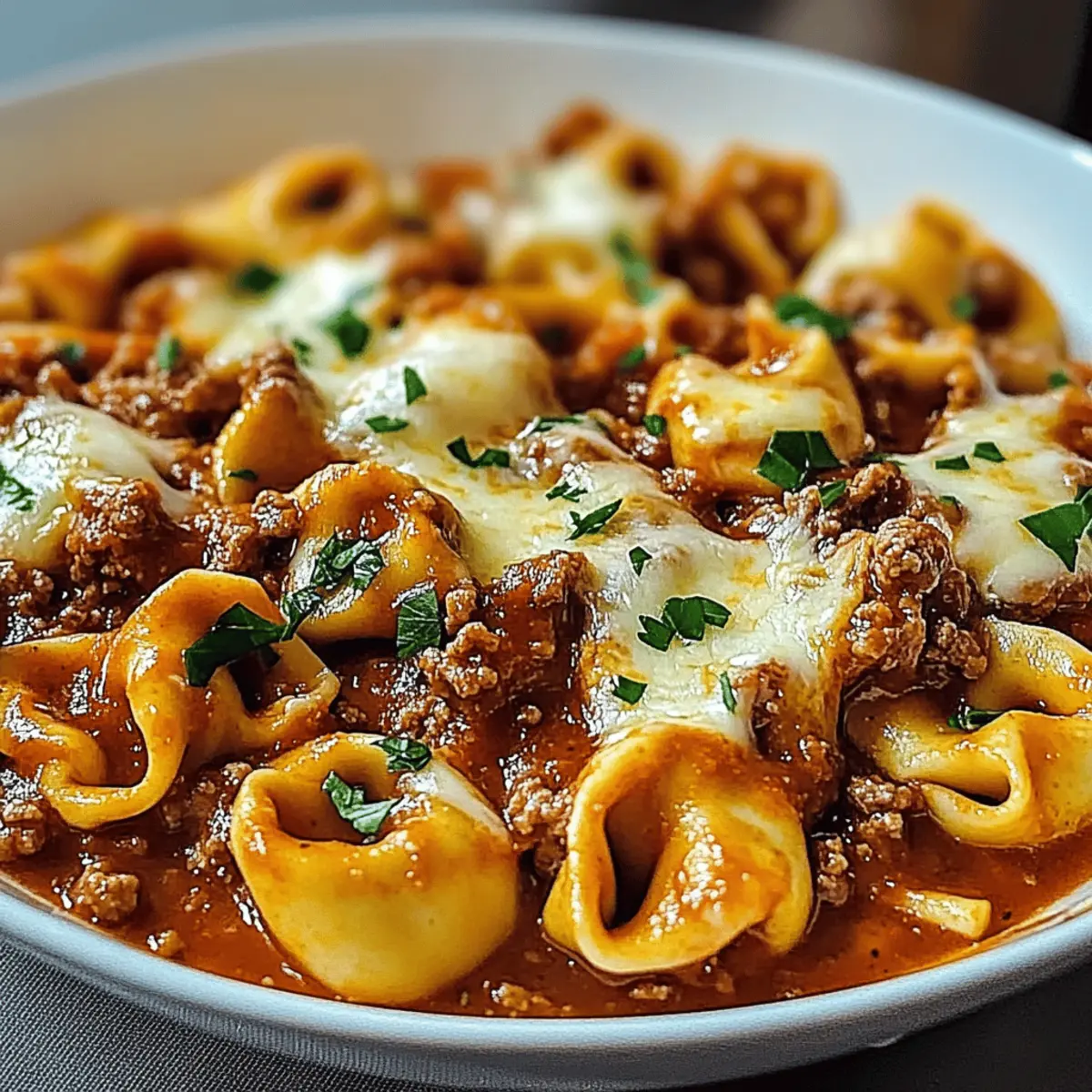 The scent of bubbling cheese and savory meat wafting from the oven instantly transforms my kitchen into a cozy haven. Today, I’m excited to share my beloved Beefy Tortellini Bake, a dish that wraps you in warmth and nostalgia, perfect for those chilly evenings when comfort food is a must. With its easy prep, this bake is not only a crowd-pleaser but also offers the flexibility to switch out ground beef for turkey or chicken for a lighter twist. Feeling adventurous? A vegetarian option awaits with meat-free sausage or mushrooms for the plant lovers among us. Gather your loved ones around the table and enjoy the heartwarming experience of this delightful dish—curious about what’s coming out of the oven? Let’s dive into the magic of cooking!