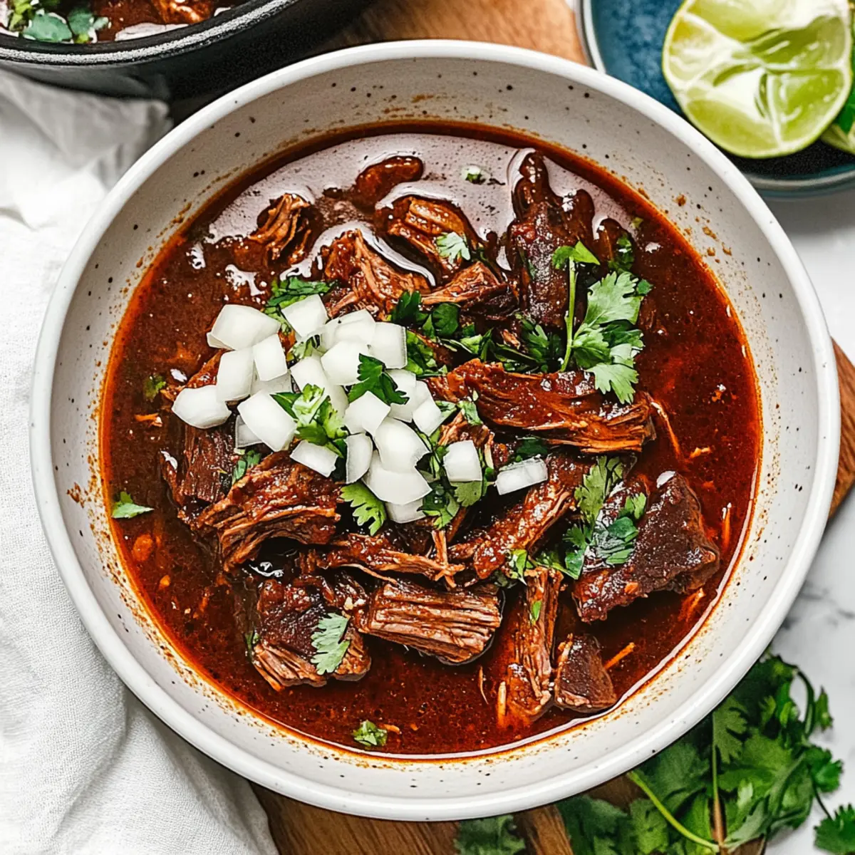 Zesty Lime Wedges: Squeeze fresh lime juice over the birria for a bright burst of acidity that complements the deep, complex flavors beautifully.
