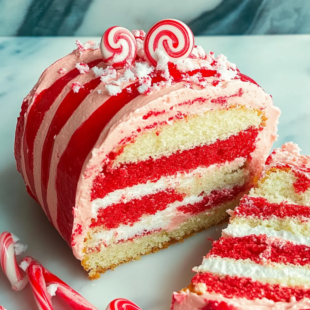 Get ready to impress your family and friends with this Candy Cane Striped Cake—your holiday dessert has never been so deliciously festive!