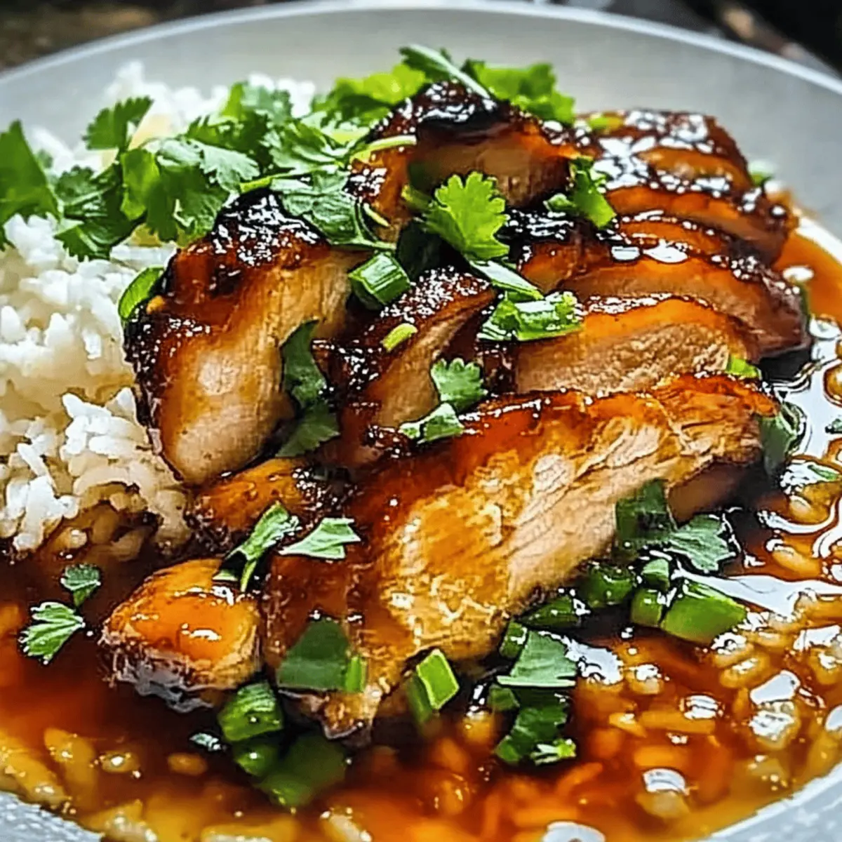 Once the chicken is tender, slice it and serve it over the fluffy jasmine rice, pouring the flavorful broth on top. Don’t forget to garnish with chopped green onions and fresh cilantro for a burst of freshness. This final touch not only adds color but elevates your Caramelized Soy Chicken to a comforting yet elegant meal.