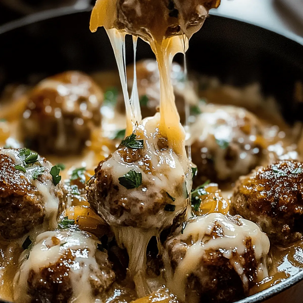 Embrace the soul-warming goodness with these Cheesy French Onion Meatballs that everyone will love!