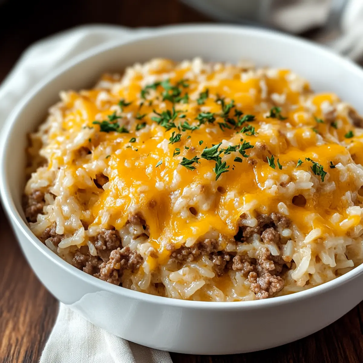 As I was rummaging through my pantry one busy weeknight, I stumbled upon the ultimate comfort food stars: ground beef, rice, and a mix of all things cheesy. This Cheesy Ground Beef and Rice Casserole came to life, melding nostalgia with simplicity. What I love most about this dish is how effortlessly it transforms humble pantry staples into a family-friendly meal that pleases even the pickiest eaters. It’s not just quick to prep, but it also requires minimal cleanup, letting you spend more time enjoying dinner and less time at the sink. Plus, you can easily customize this casserole with your favorite ingredients, ensuring everyone gets a taste they adore. Are you ready to dive into a bowl of cozy goodness?