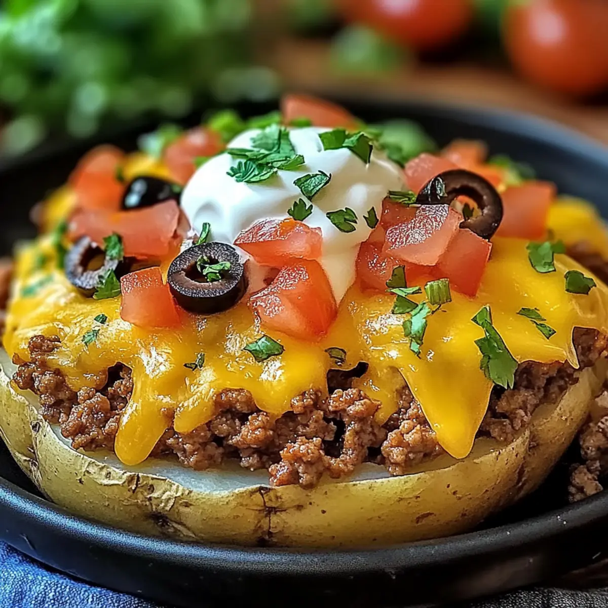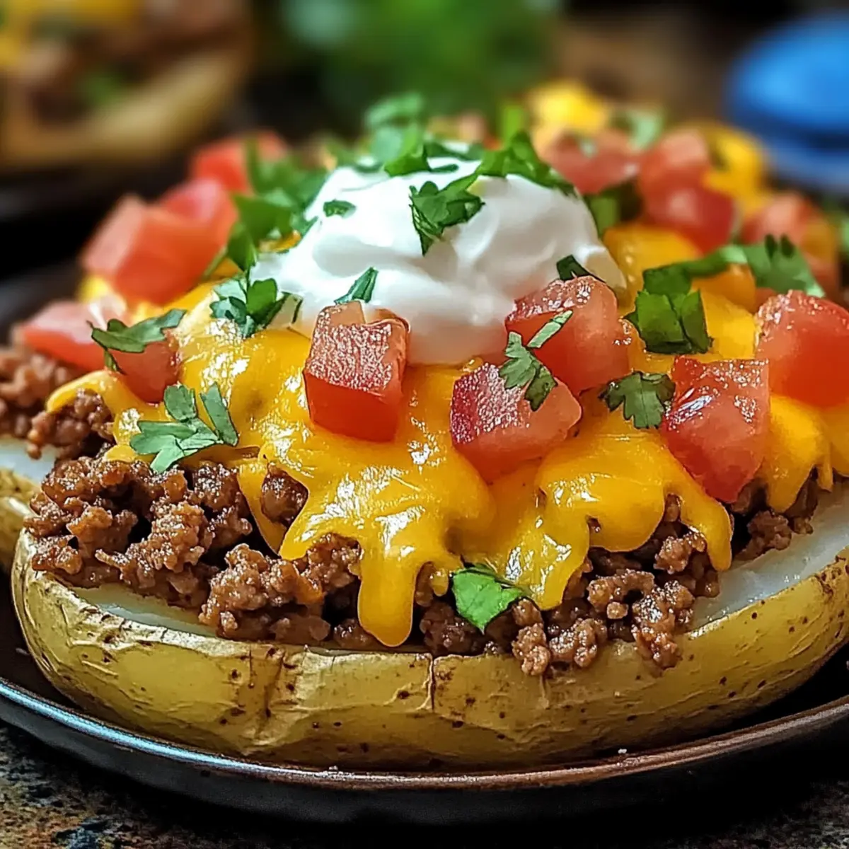 Cheesy Taco Potatoes combine fluffy baked potatoes, savory beef, and gooey cheese, making for a delightful dinner option.