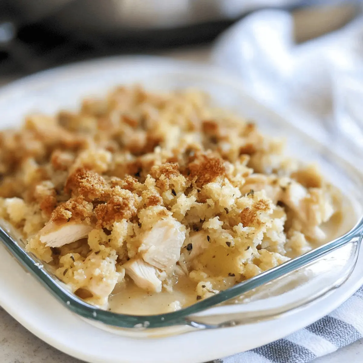 These Chicken and Stuffing Casserole preparations are perfect for busy cooks looking to save time during the week! You can assemble the casserole up to 24 hours in advance, combining the shredded chicken and cream of chicken soup, then spreading this mixture in your greased baking dish. To maintain the best texture, keep the stuffing separate and only prepare it right before baking. Cover the dish tightly with plastic wrap in the refrigerator to lock in moisture. When you’re ready to enjoy a comforting meal, simply prepare the stuffing, drizzle on the chicken broth, and bake the casserole at 350°F (175°C) for about 45 minutes. This way, you’ll have a delicious, home-cooked Chicken and Stuffing Casserole with minimal effort!