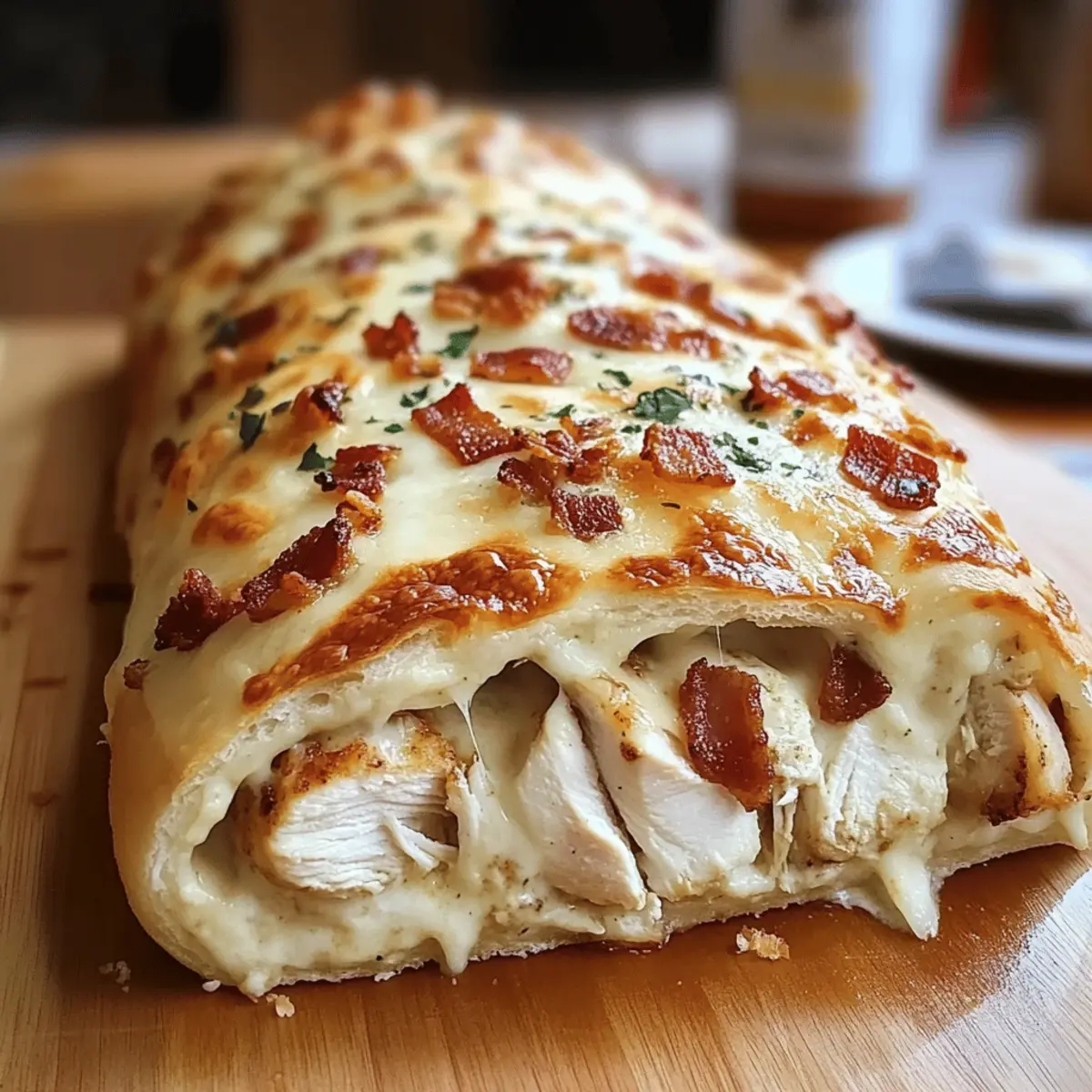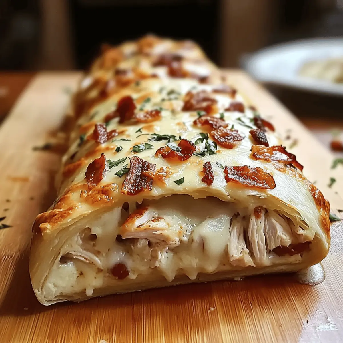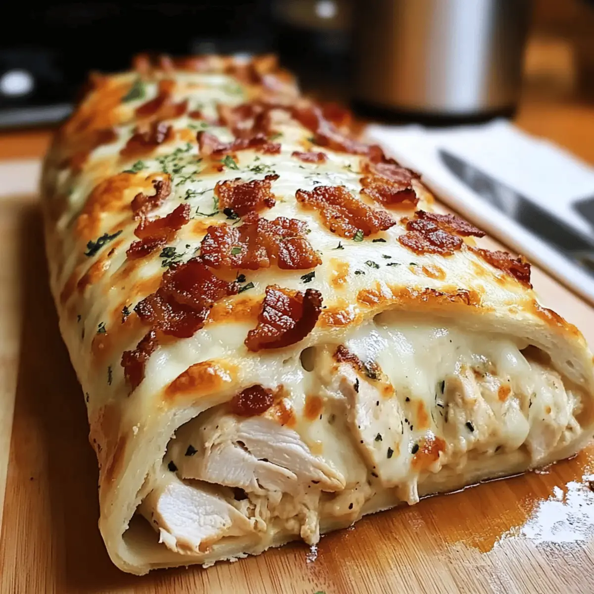 Deliciously Comforting: This Chicken Bacon Ranch Stromboli wraps all your favorite flavors in one golden, crispy package—delighting your taste buds with every bite!
