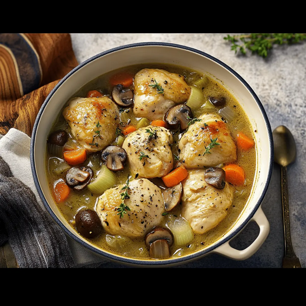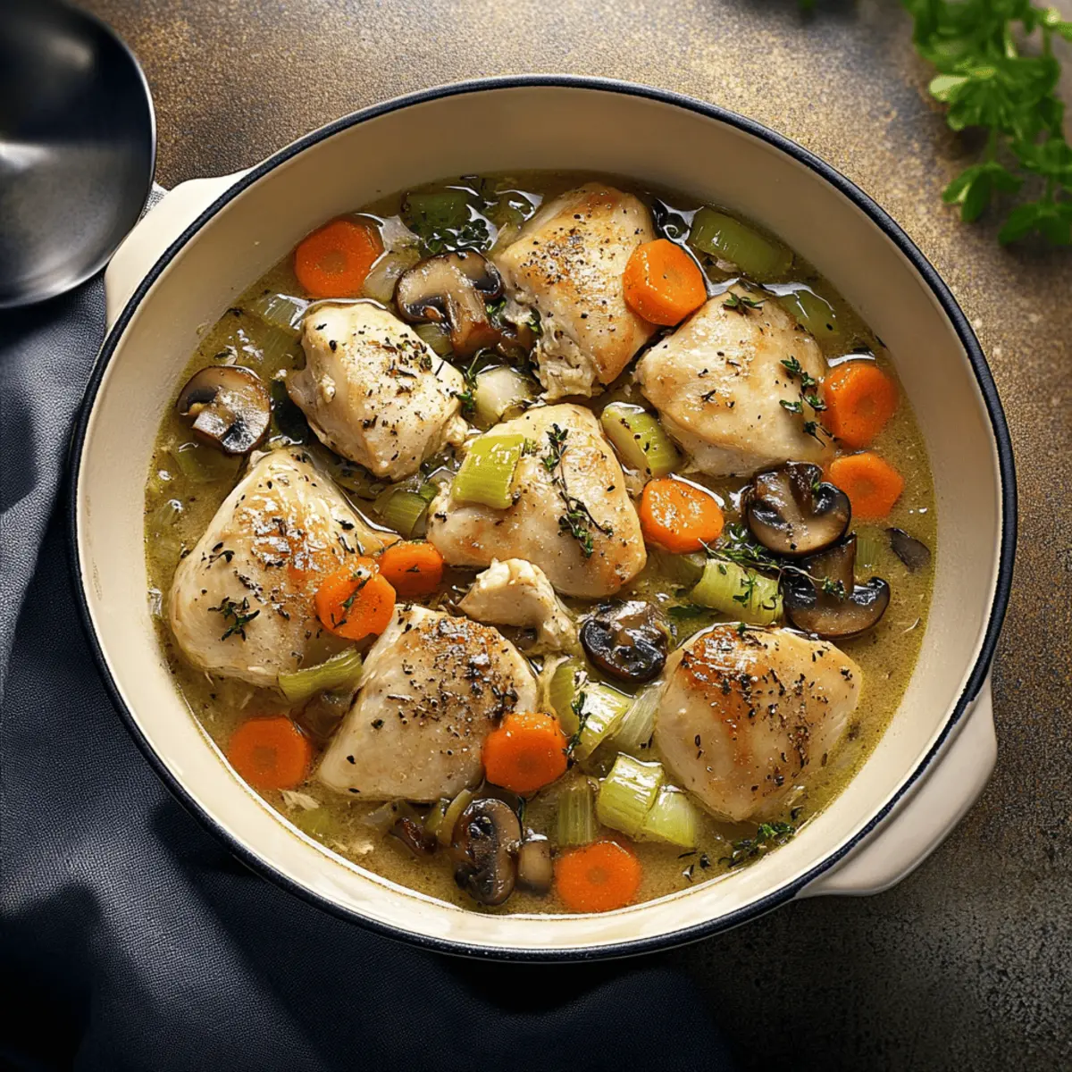 Irresistible Flavor: This Chicken Casserole bursts with savory goodness, combining tender, juicy chicken thighs with earthy vegetables in a rich sauce.