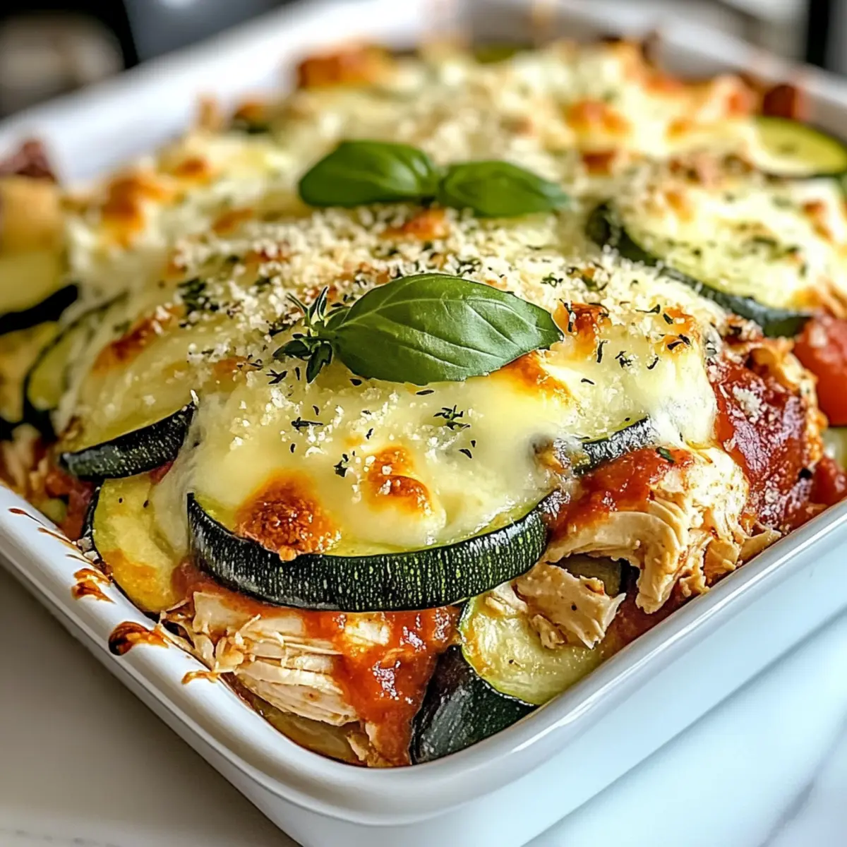 Once baked, remove the dish from the oven and allow it to cool slightly before serving. This resting time helps the flavors meld together and makes the dish easier to slice. Consider garnishing with fresh basil for a pop of color and flavor that complements your Chicken Zucchini Bake beautifully.