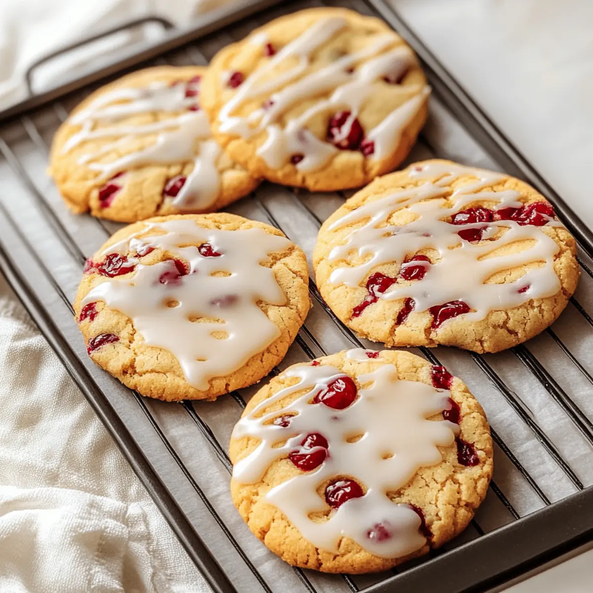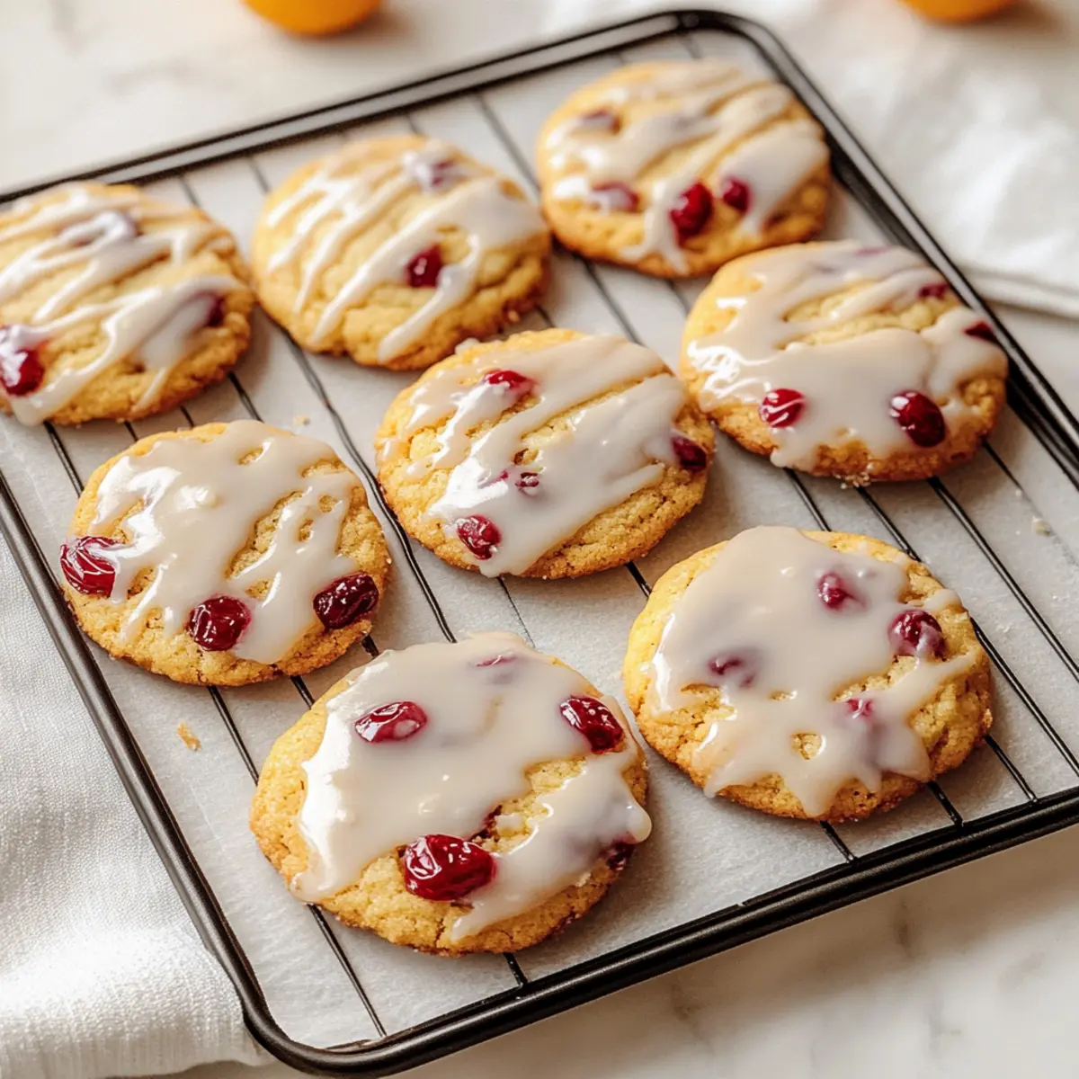 While the cookies cool, prepare the icing by mixing 1 cup of powdered sugar with 2 tablespoons of orange juice and a bit of orange zest until smooth. This glaze adds a shiny finish to your Christmas Cranberry Orange Cookies. Drizzle the icing over the cooled cookies for a festive touch that ties together the flavors beautifully.