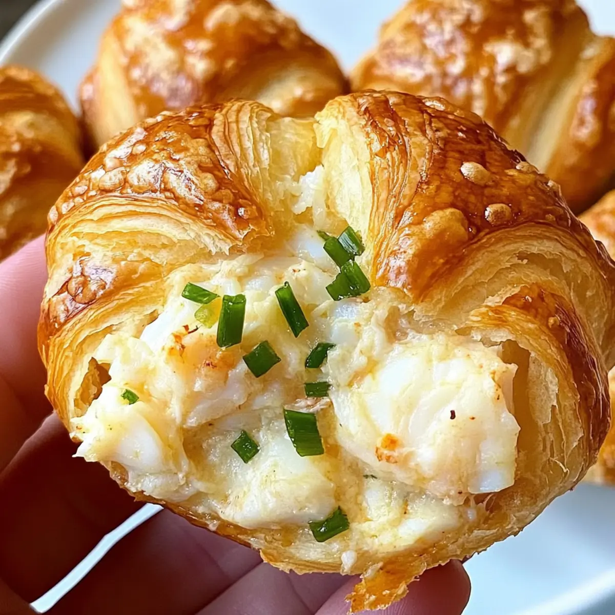 Once baked, remove the croissants from the oven and brush any remaining garlic butter over the tops for extra flavor. Sprinkle with additional chopped chives for a touch of color before serving. These crab dip croissants are best enjoyed warm, allowing the creamy filling to shine in every delightful bite.
