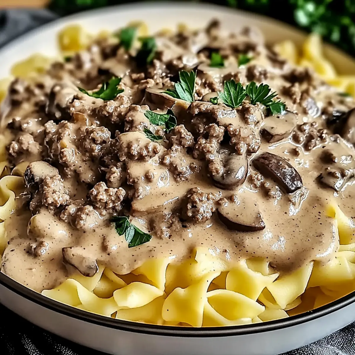 As I stood by the stove, the comforting aroma of sizzling onions and garlic filled the kitchen, instantly transporting me to a cozy bistro where time slows down and every bite feels like a warm hug. This Creamy Hamburger Stroganoff is my go-to recipe for busy weeknights when the last thing I want is to fuss over dinner. Ready in just 30 minutes, it’s the ultimate comfort food that combines ground beef, tender mushrooms, and a luscious sour cream sauce, all tangled up with egg noodles. Not only is it a quick dinner, but it’s also family-friendly and easily adaptable to please even the pickiest of eaters. Want to discover how simple it is to bring this delightful dish to your table? Let’s dive in!