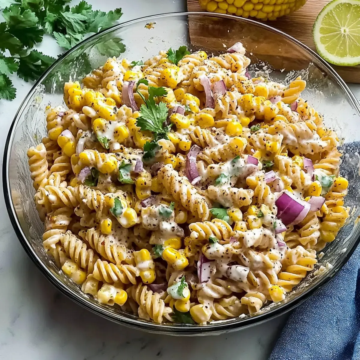 As I stood by my grill one sunny afternoon, the aroma of charred corn wafting through the air took me back to bustling Mexican streets, where elote carts serve up the kind of flavors that sing with joy. That’s the inspiration behind my Creamy High Protein Elote Pasta Salad, a delightful blend of smoky, sweet corn and a creamy yogurt dressing that’s perfect for summer gatherings. This dish not only delivers healthful doses of protein, thanks to Greek yogurt and cotija cheese, but it’s also meal prep friendly, making it a versatile choice for busy weeks. Whether you’re serving it as a vibrant side at a barbecue or as a satisfying standalone lunch, this recipe is bound to impress. Ready to take your next meal to flavorful new heights?