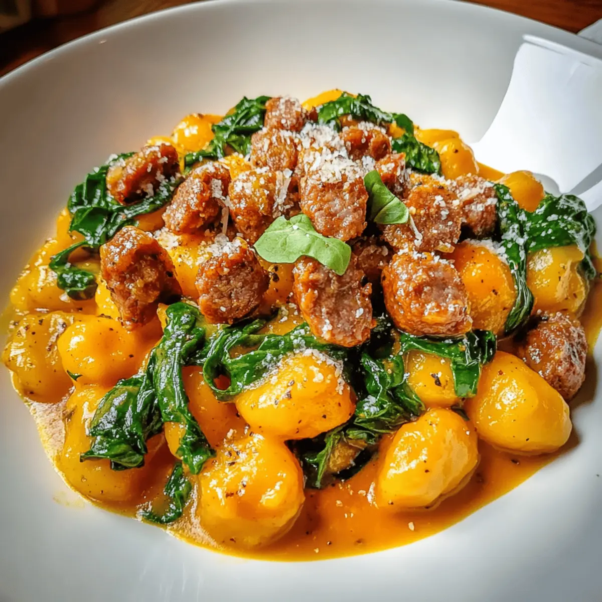 Creamy Pumpkin Gnocchi with Spinach and Italian Sausage Bliss