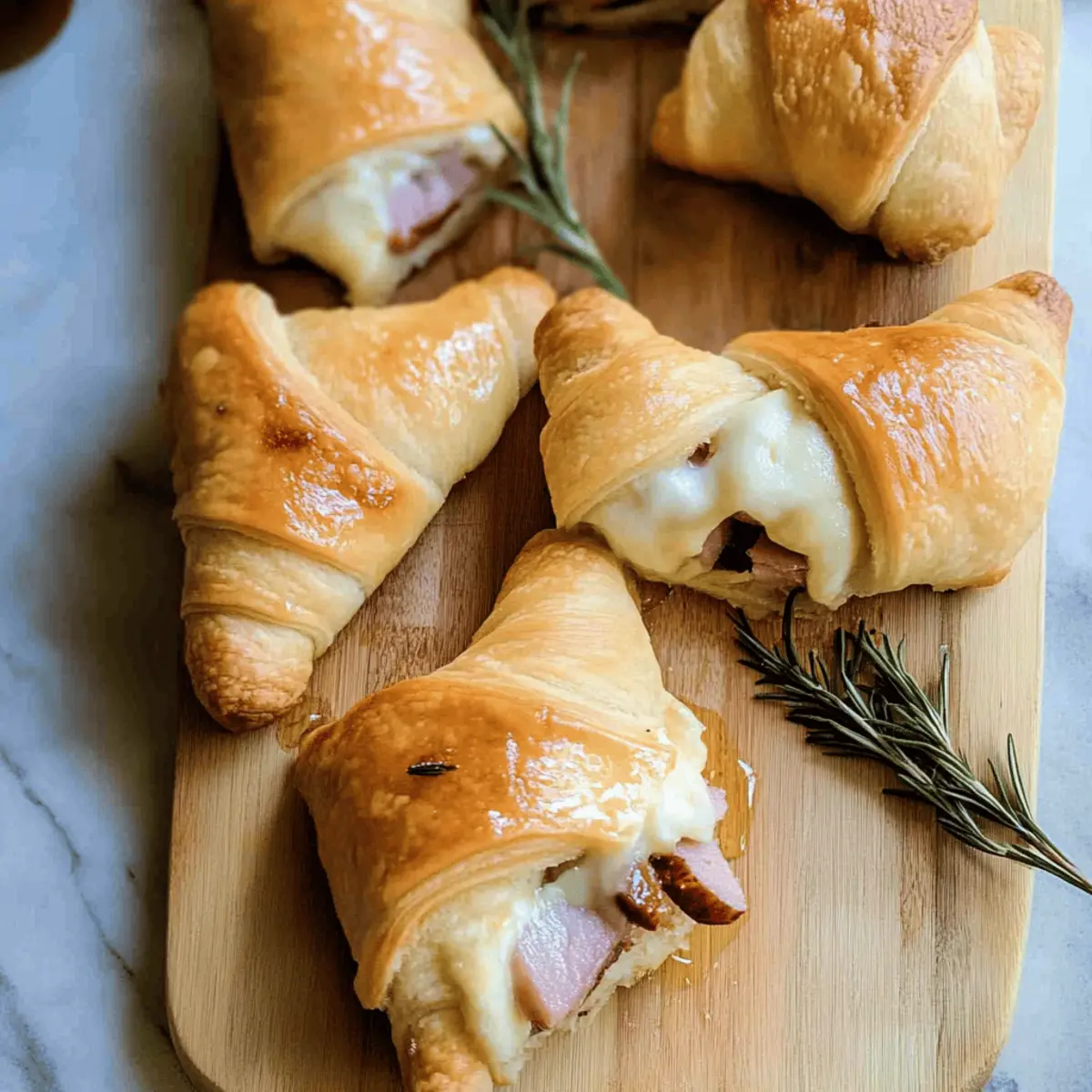Drizzle a small amount of honey over the sliced ham and cheese, allowing the sweetness to enhance the flavor of the sandwich. Then, sprinkle finely chopped fresh rosemary over the top to bring in a fragrant aroma that perfectly complements the savory elements. This step adds depth and ensures your crescent sandwiches are irresistibly flavorful.