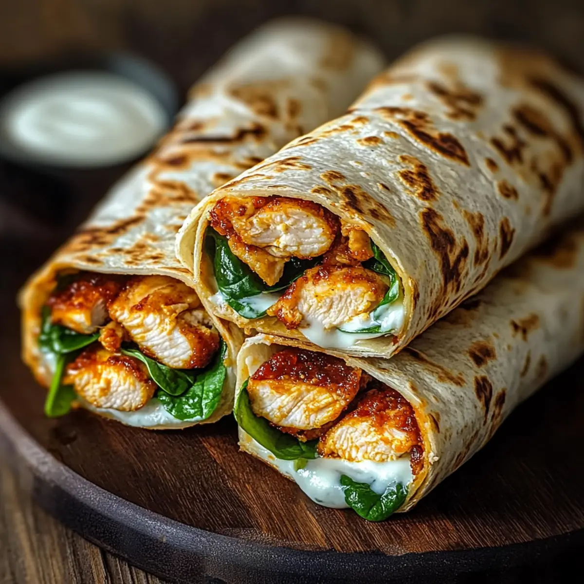 - Assemble the Wraps: Layer tortillas with spinach, mozzarella, and chicken.