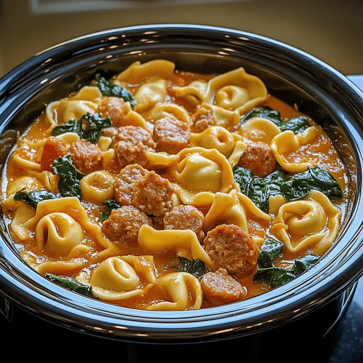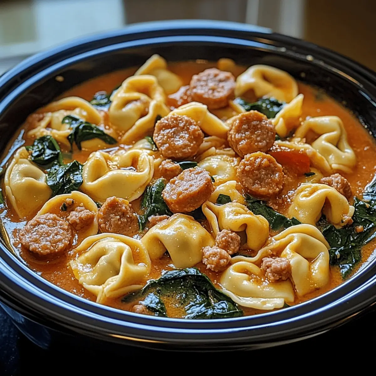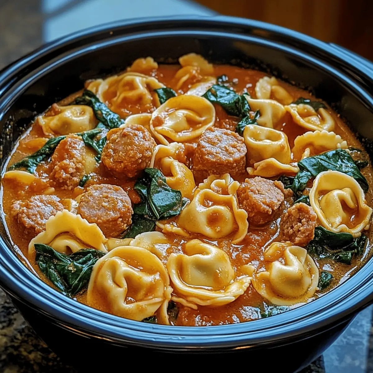 Enjoy the creamy and comforting flavors of Crockpot Cheese Tortellini, combining savory sausage and cheese tortellini for a delightful meal.