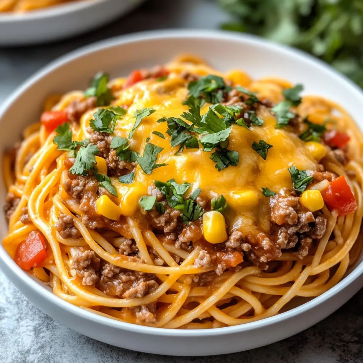 After the cheese has melted, give the mixture a good stir to mix in the cheesy goodness. Serve the CrockPot Taco Spaghetti hot, garnished with freshly chopped cilantro for a burst of flavor and color. This delightful dish is now ready to share with family and friends, making every bite a comforting experience!