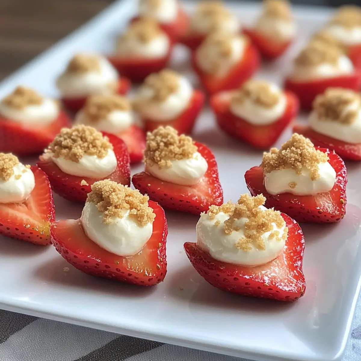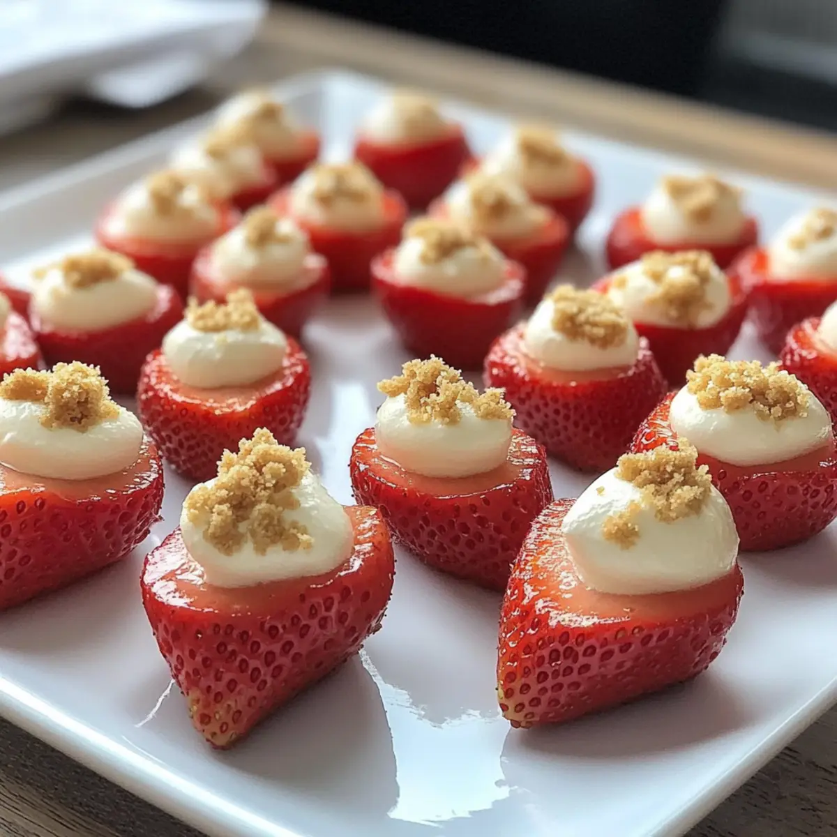 One sunny afternoon, I found myself dreaming of a sweet indulgence that could brighten any gathering. Enter these delightful Deviled Strawberries with Cheesecake Filling, a playful twist on a classic dessert that embodies the spirit of summer! With their luscious cream cheese filling nestled in fresh strawberries, these finger-friendly treats capture the essence of strawberry cheesecake in every vibrant bite. Not only are they a show-stopping addition to any party platter, but they also require no baking, making them an effortless way to impress your friends and family. The combination of creamy, tangy filling and the hint of crunch from graham cracker crumbs creates a harmony that will leave everyone reaching for seconds. Curious about how to whip up this easy and charming finger food? Let’s dive into the recipe together!