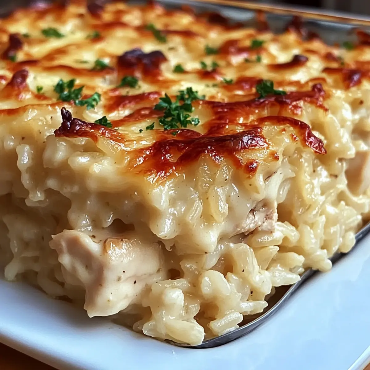 Cozy Dump-and-Bake Chicken Alfredo Rice Casserole Recipe
