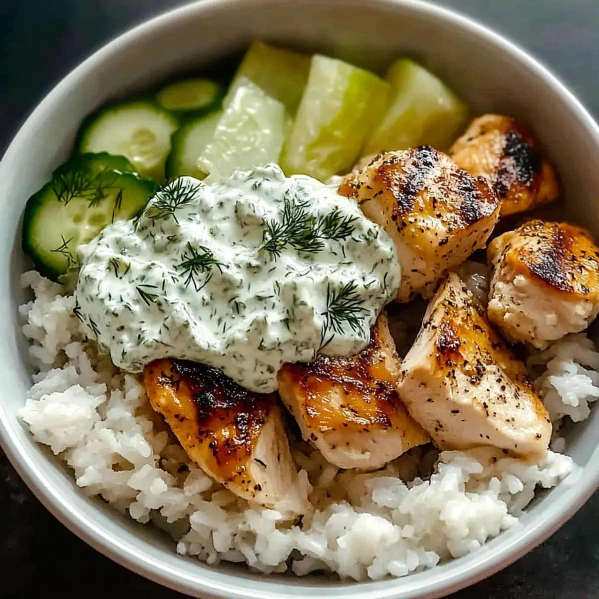 Rich, Mediterranean flavors: The combination of tender chicken, fluffy rice, and zesty tzatziki brings an explosion of taste that transports you to the sun-soaked shores of Greece.