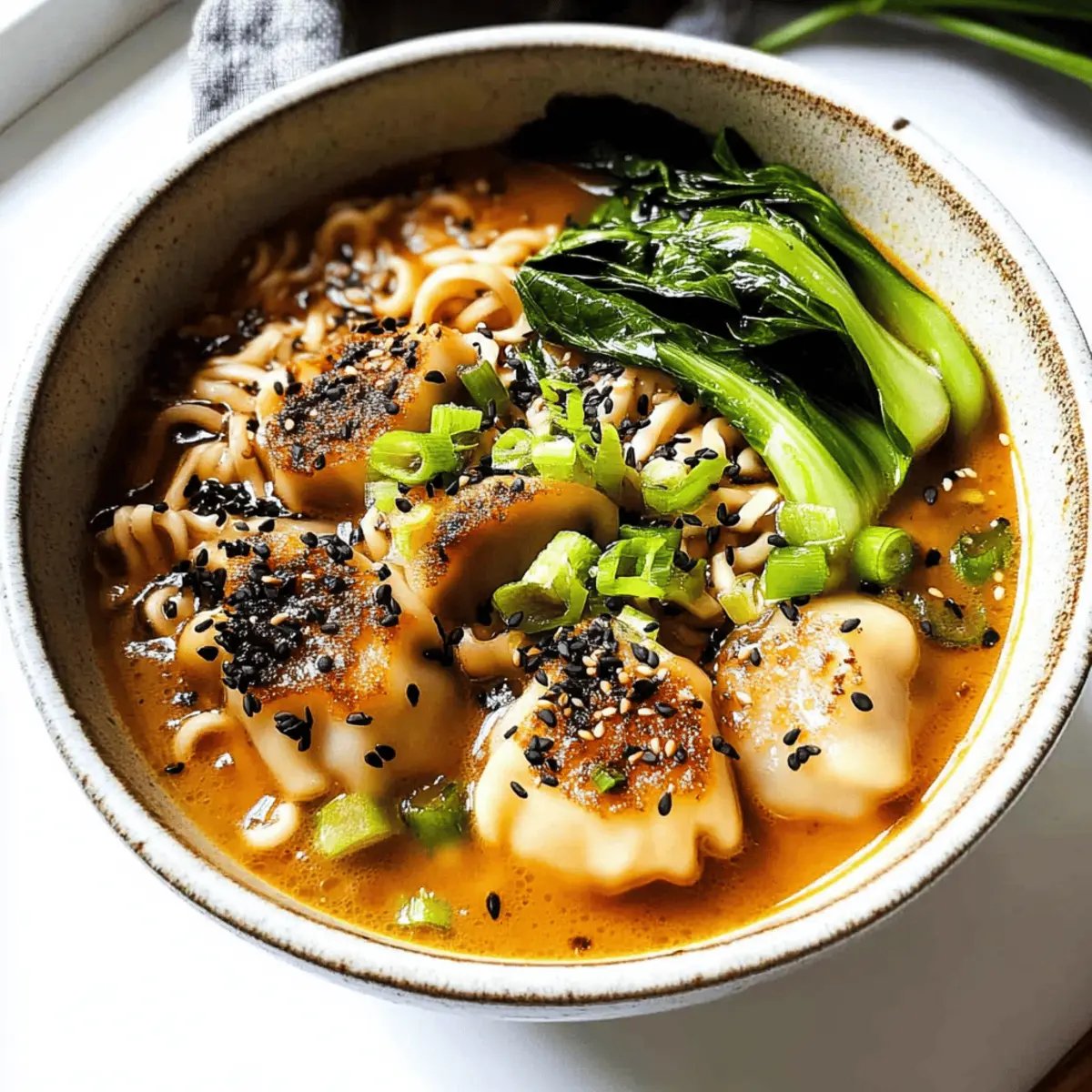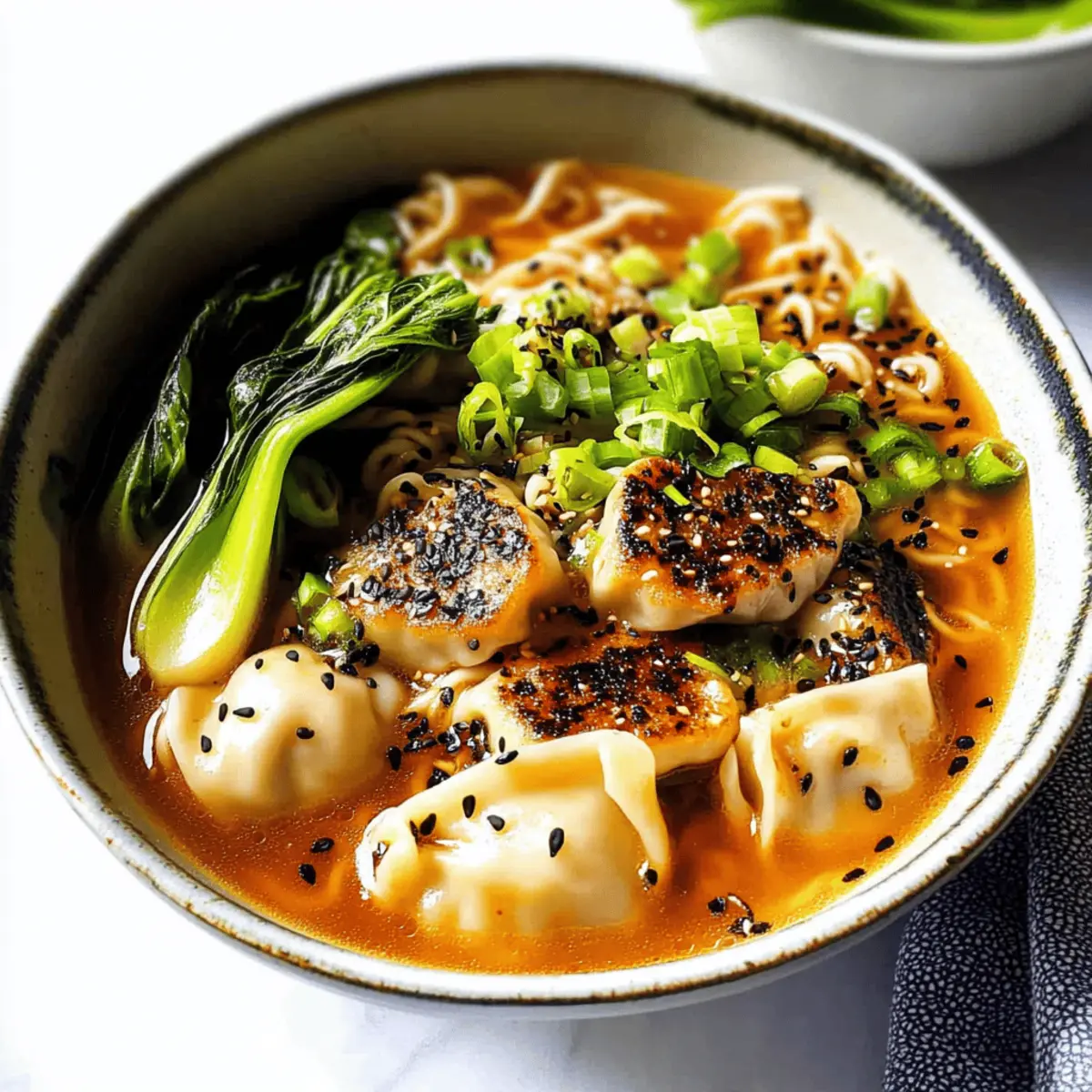 Absolutely! This Dumpling Ramen Soup is easily adaptable for various diets. For gluten-free options, use gluten-free ramen noodles and tamari instead of soy sauce. If you’re concerned about allergens or specific dietary needs, consider using vegetable broth for a vegan alternative and check the dumpling packaging for allergens like nuts or soy. It’s always smart to read labels to ensure you’re adhering to your dietary restrictions.