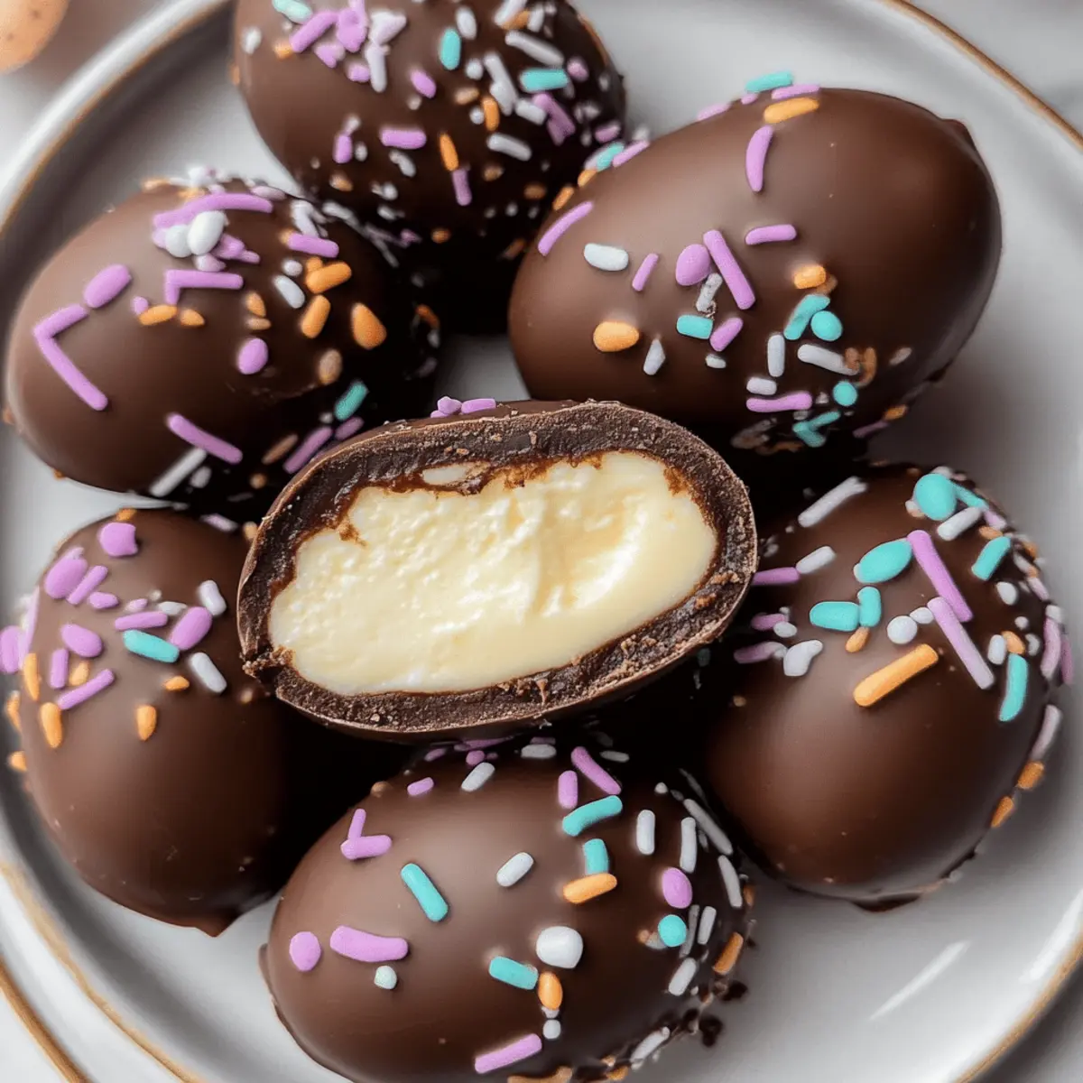 Once all the cheesecake eggs are coated and decorated, return them to the refrigerator to chill for another 30 minutes to 1 hour, allowing the chocolate to set firmly. Serve these Playful Easter Egg Cheesecake Bites chilled for the best texture, and watch them disappear at your spring celebration, bringing smiles to both kids and adults alike!