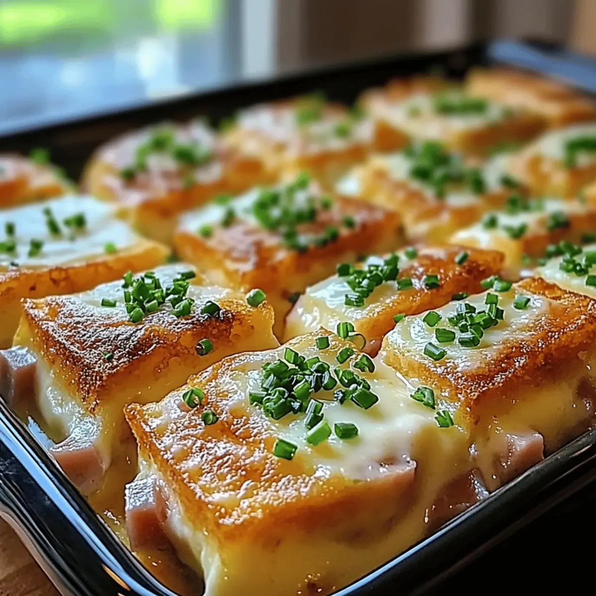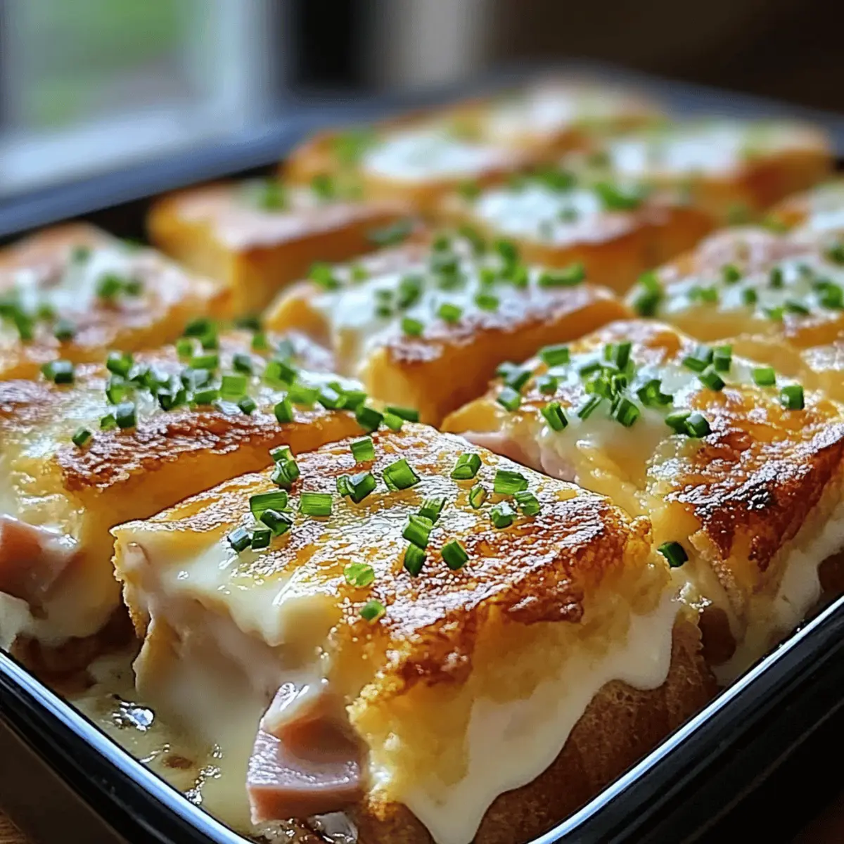Once your Eggs Benedict Casserole is done baking, allow it to cool slightly for about 5-10 minutes before cutting into squares. Serve hot, drizzled generously with the homemade Hollandaise sauce and garnished with fresh chives for a lovely finishing touch. This hearty casserole is now ready to delight your guests at brunch!