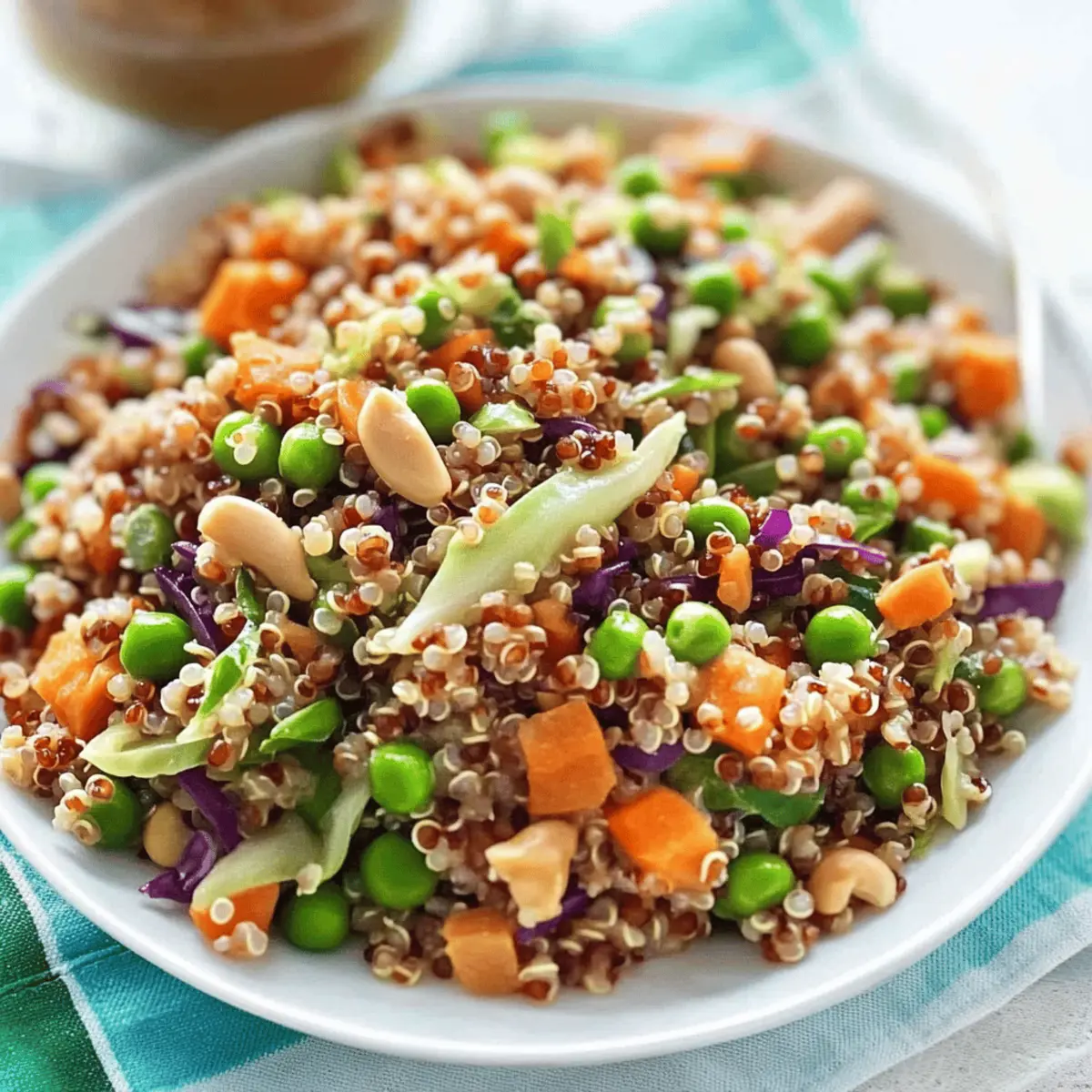 This Asian Quinoa and Farro Salad is a fantastic choice for meal prep, making life easier for busy home cooks! You can prepare the quinoa and farro up to 24 hours in advance; simply cook them according to package instructions, fluff, and allow them to cool before storing in the refrigerator. Additionally, chop the vegetables (cabbage, carrots, peas) and store them in an airtight container for up to 3 days to preserve their freshness and crunch. When you’re ready to enjoy, combine the prepped grains and vegetables, whisk together the dressing, and toss everything just before serving. This way, you’ll have a delicious, nutritious salad ready to go with minimal effort!