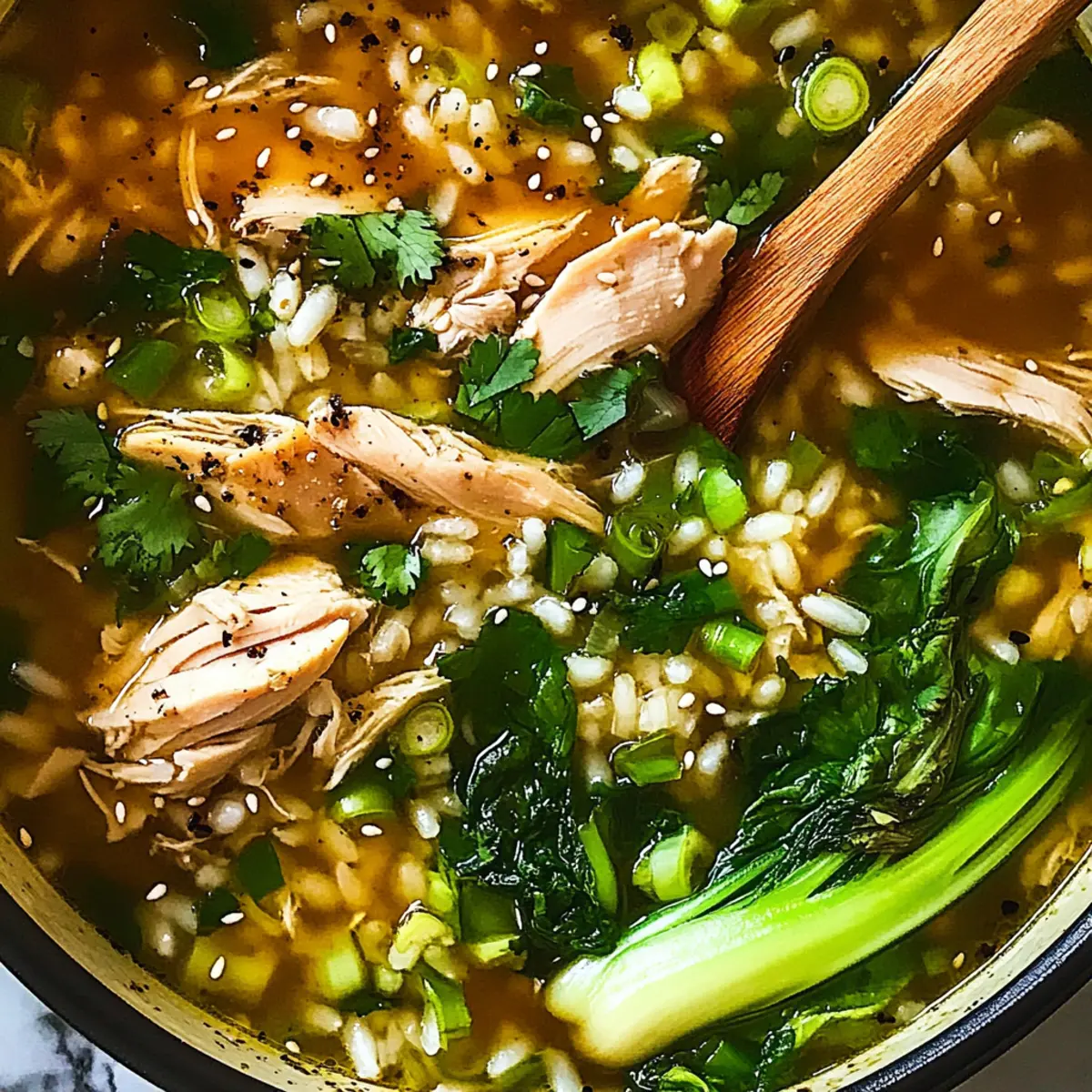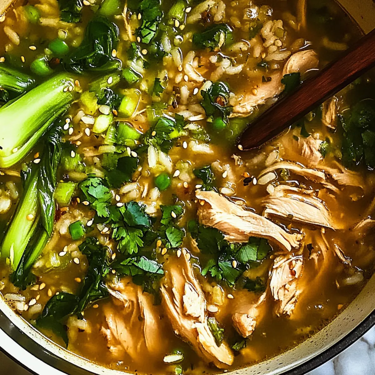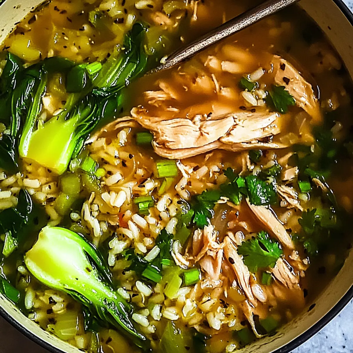 This ginger chicken and rice soup is a meal prep dream come true, allowing you to enjoy homemade comfort in a fraction of the time! You can chop the veggies and measure out your spices up to 3 days in advance, keeping them in airtight containers in the refrigerator to maintain freshness. The chicken can be cooked ahead as well; simply prepare the soup base and store it in the fridge for up to 24 hours before adding the bok choy and reheating. To finish, just simmer everything together and add lime juice right before serving for a bright, fresh flavor. This makes it easy to whip up a delicious, nourishing meal on even the busiest nights!