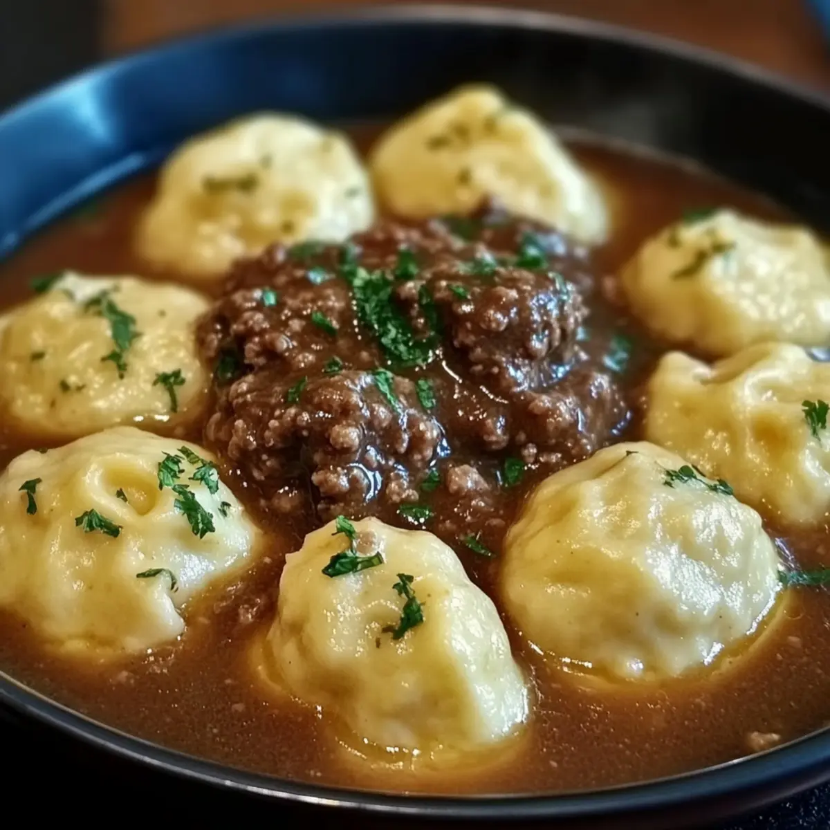 Nothing brings a family together quite like the aroma of Ground Beef and Dumplings wafting from the kitchen! This dish isn’t just a meal—it’s a heartfelt hug on a plate, ideal for those busy weeknights when time is short, but love for homemade food runs deep. The beauty of this comforting one-pot meal lies in its simplicity; you can whip it up effortlessly using staple pantry ingredients, making it a Weeknight Dinner MVP. Plus, the rich gravy combined with fluffy dumplings creates a satisfying experience for both taste buds and souls alike. Interested in adding your twist? Let’s dive into making this classic dish with options that cater to your cravings!