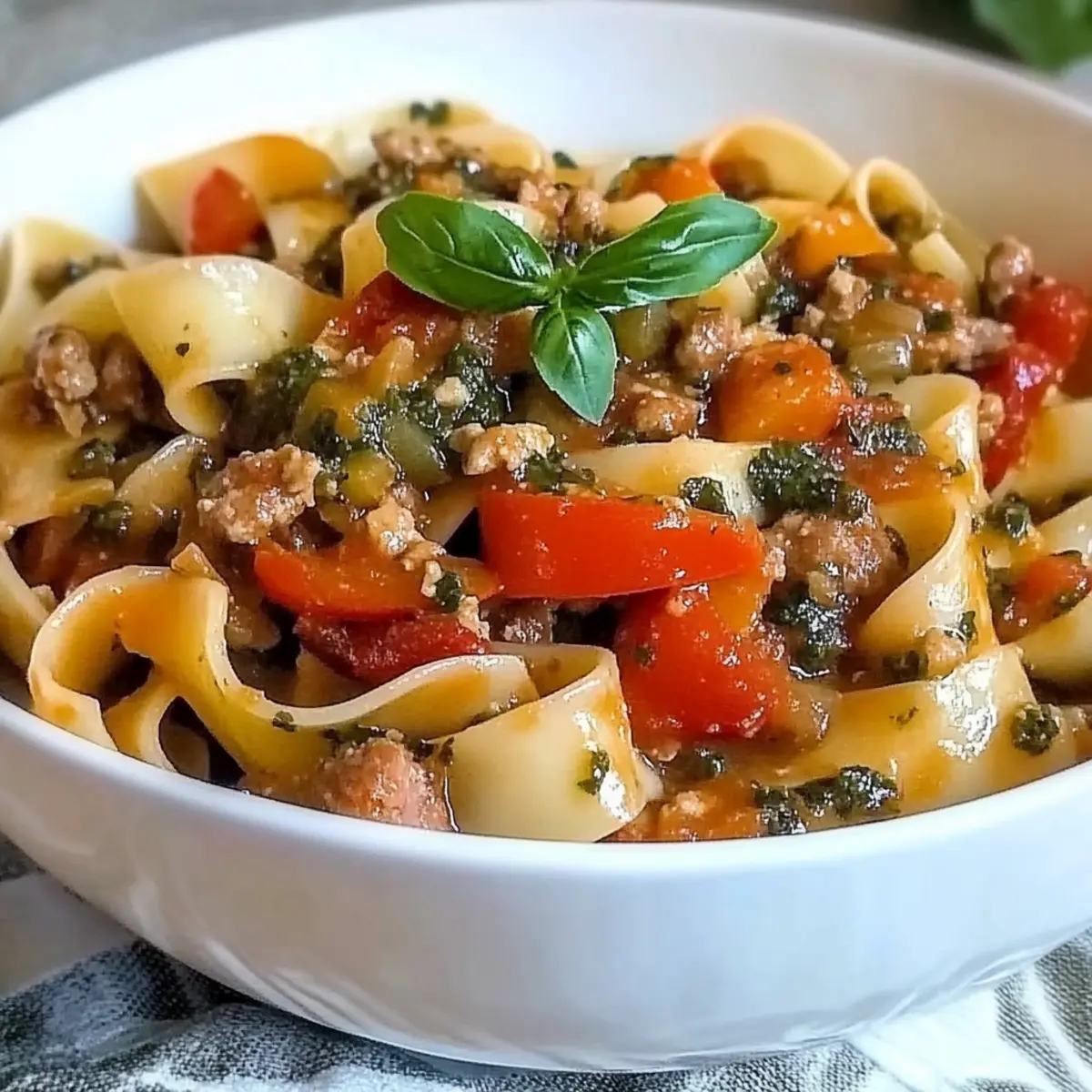 As I stirred the bubbling pot, the alluring aroma of garlic and spices filled my kitchen, instantly transporting me to the lively streets of Italy and Thailand. That’s the magic behind my Italian Drunken Noodles: a bold fusion of comfort and spice that seamlessly blends hearty Italian sausage with colorful bell peppers and luscious pappardelle noodles. This vibrant dish, packed with flavor and texture, is not only quick to prepare but also completely customizable—perfect for those weeknight dinners when you crave something satisfying yet creative. Whether you’re looking to impress guests or simply enjoy a hearty meal at home, this spicy pasta recipe is sure to bring a delightful twist to your table. Ready to dive into a plate of this scrumptious goodness? Let’s get started!