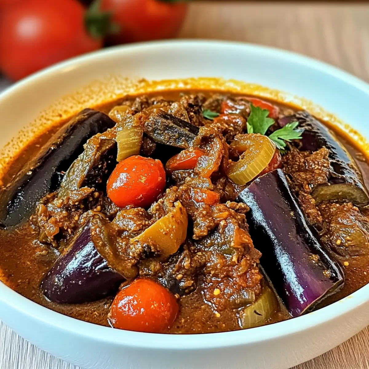 Cinnamon Twist: Incorporate a dash of cinnamon for a warm, aromatic flavor that pairs beautifully with eggplant and enhances the stew’s depth.