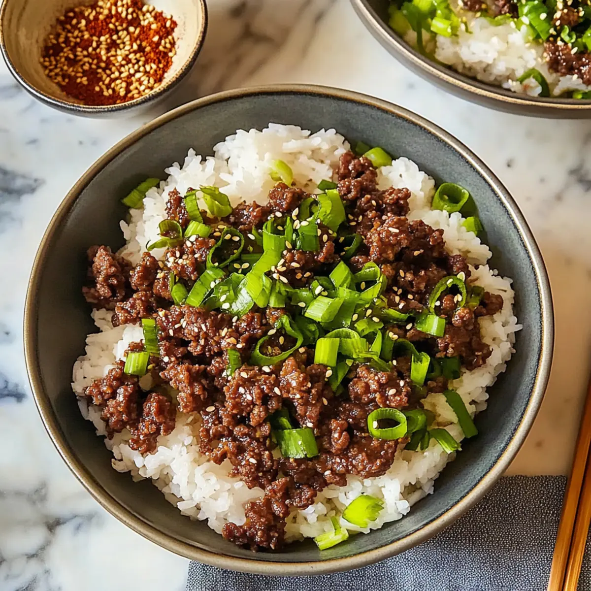 These Quick Korean Beef Bowls are fantastic for meal prep enthusiasts! You can make the sauce up to 24 hours in advance and store it in an airtight container in the refrigerator to save time when you’re ready to cook. Additionally, ground beef can be browned and mixed with the sauce up to 3 days ahead; simply refrigerate it in the same container. When ready to serve, just reheat the mixture in a skillet over medium heat until heated through (about 5 minutes), and serve with rice or your favorite vegetables for a quick, balanced meal. This not only ensures flavors meld beautifully but also allows for hassle-free dinners, making your busy nights a breeze!
