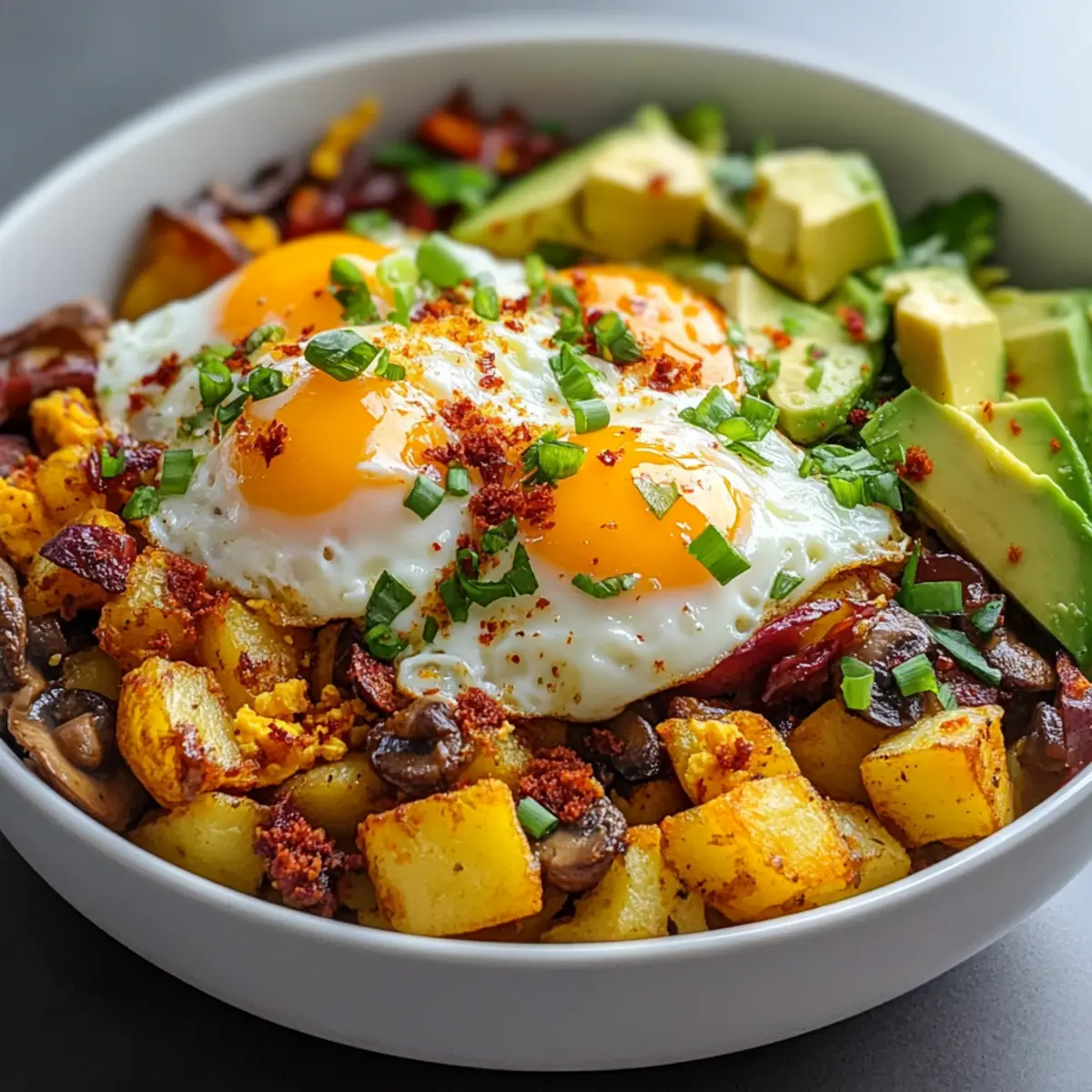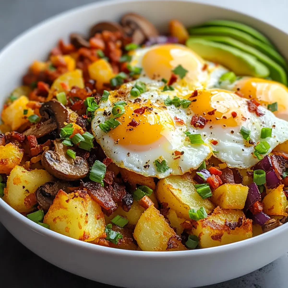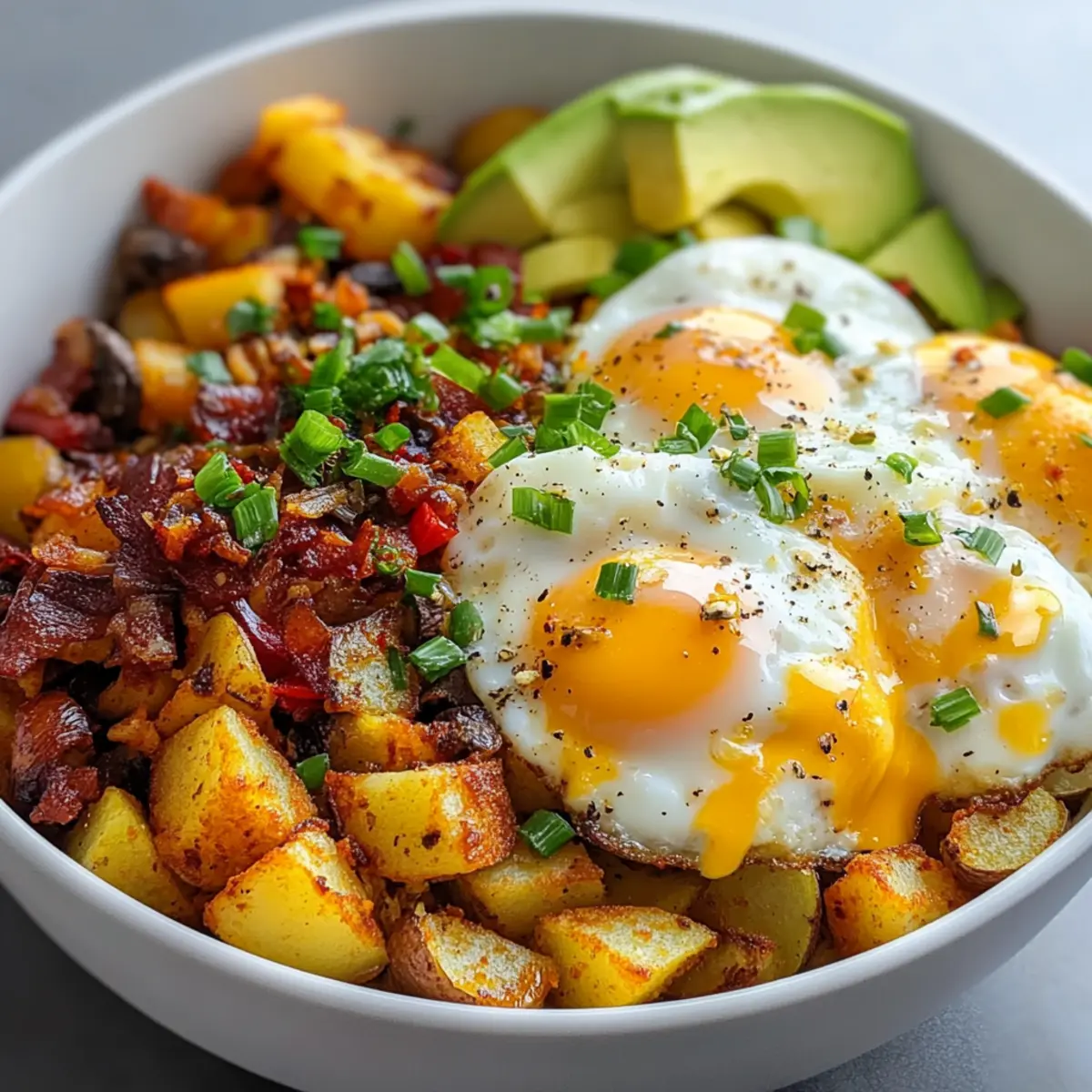Comforting, nutritious goodness: This loaded breakfast bowl is a delightful mix of textures and flavors, combining crispy potatoes with fluffy eggs and savory proteins. Customizable for everyone: Whether you’re a meat-lover or a vegetarian, you can easily adjust ingredients to fit your preferences. Meal prep superstar: This dish can be prepared in advance, making it perfect for busy mornings—or a cozy brunch with friends. Kid-friendly appeal: Even the pickiest eaters will love the versatility of toppings and flavors! Discover more exciting ways to enjoy breakfast by checking out our Meal Prep Ideas and sharing this easy recipe with family.