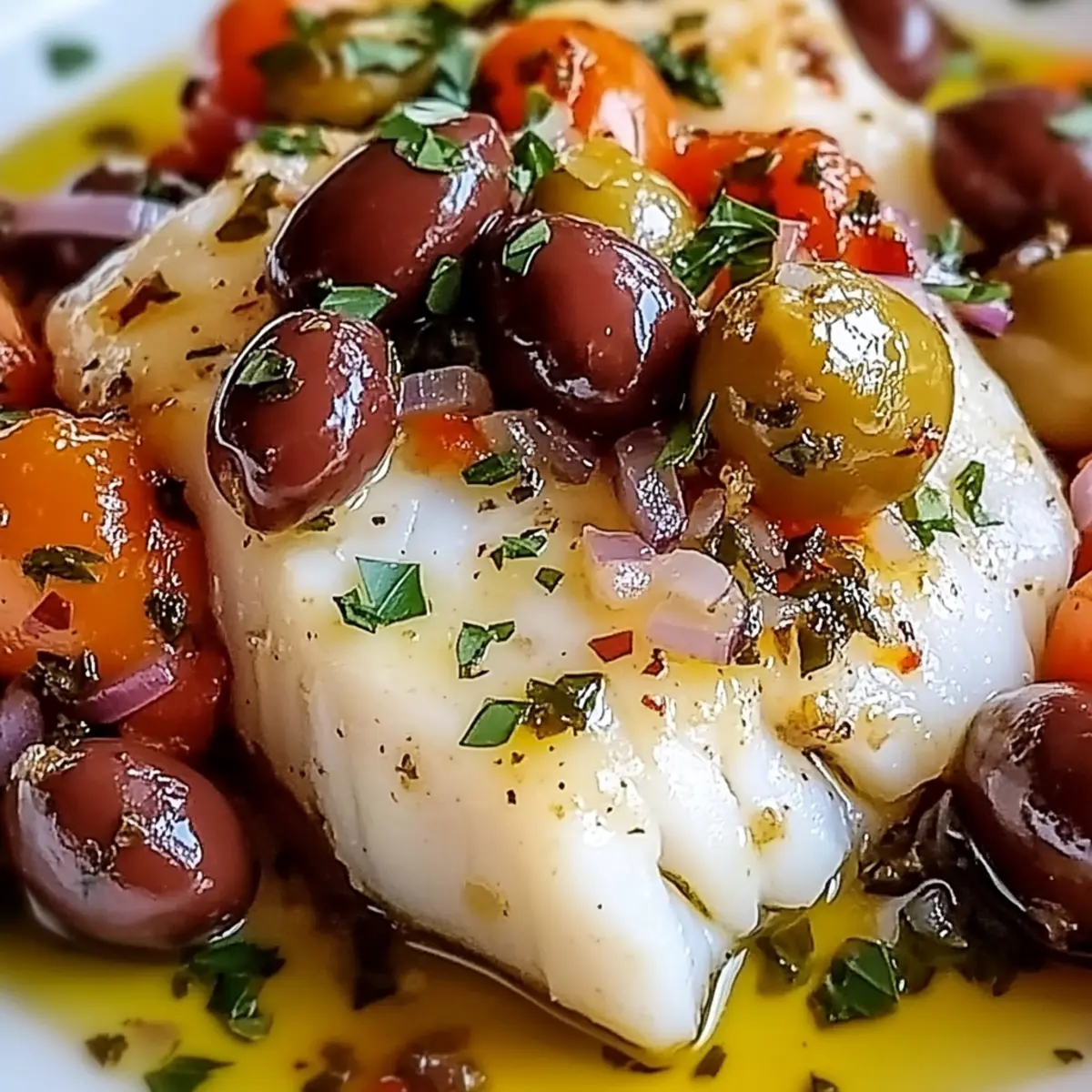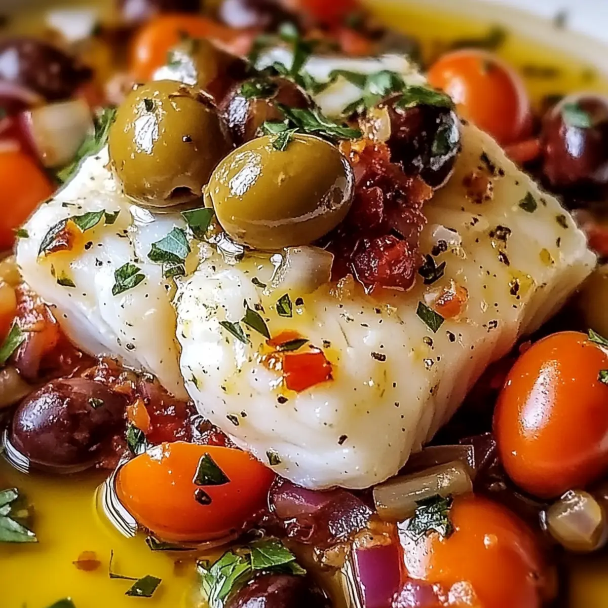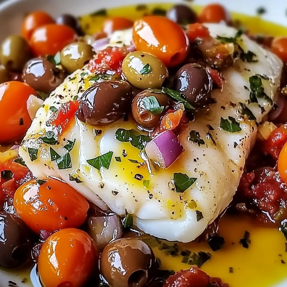 Enjoy a flavorful Mediterranean Baked Cod with Olives, a healthy and quick dinner option that delights with wholesome ingredients.
