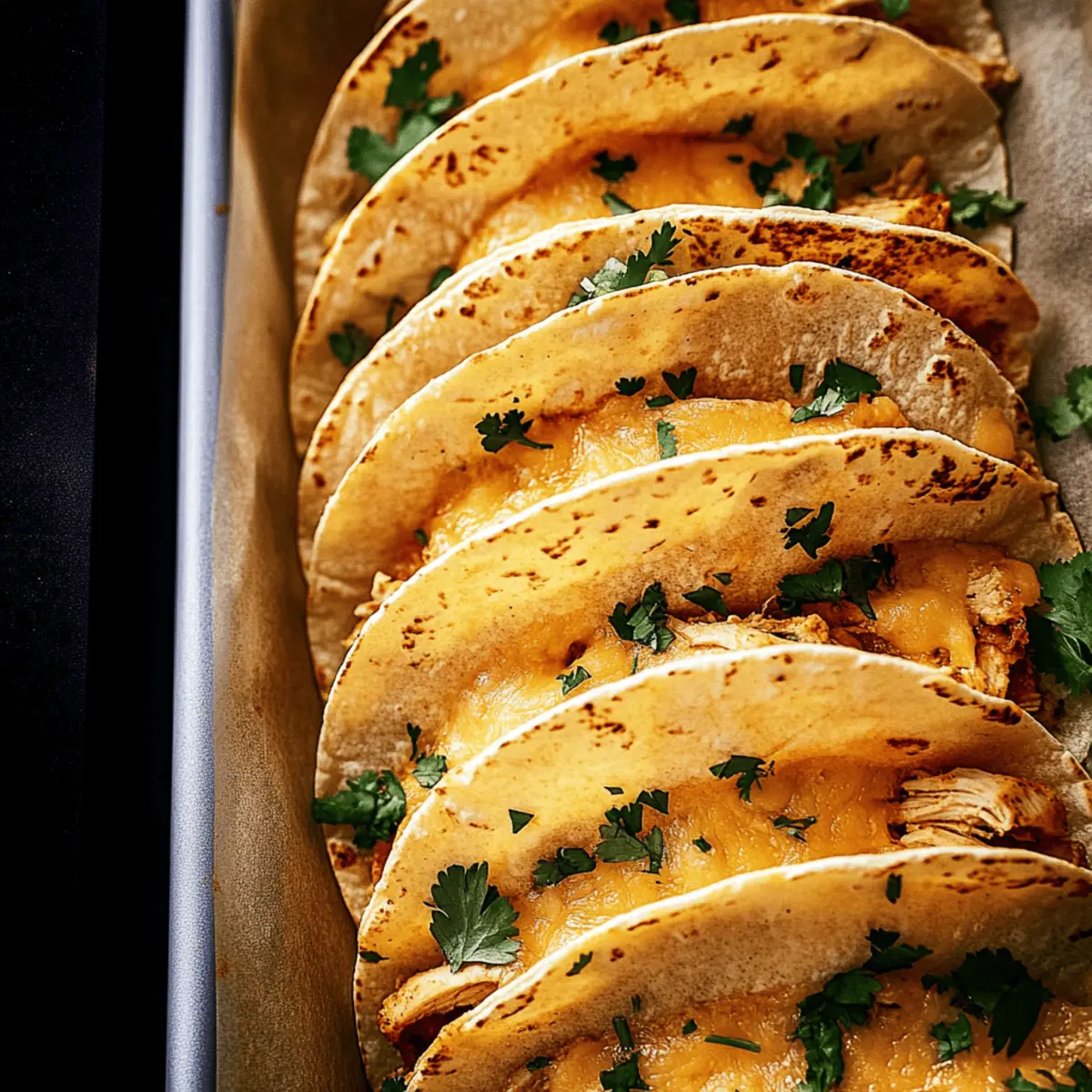 - Layer Cheese: Place cheese on top of the chicken filling to help seal the tacos during baking, preventing them from opening up.