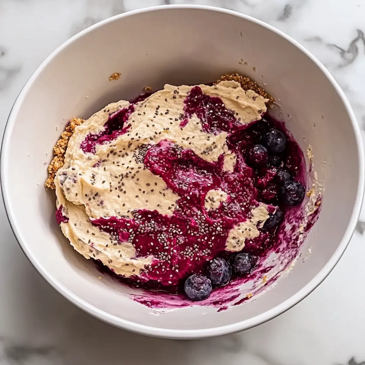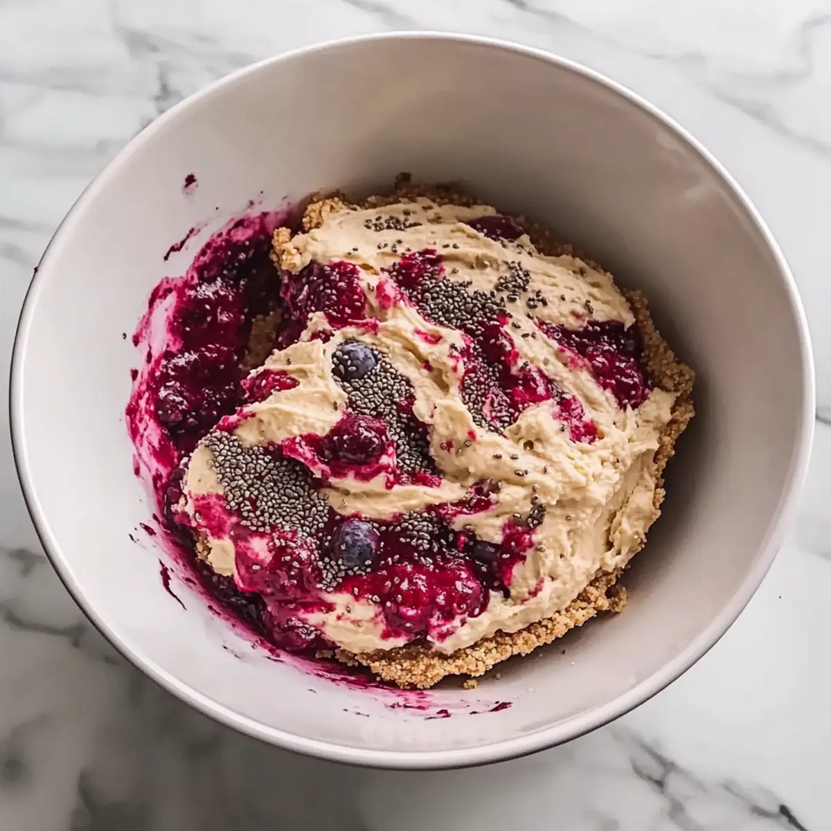 While the crust is chilling, prepare the filling by mashing or blending the fresh or thawed blueberries in a separate bowl. Combine the mashed blueberries with chia seeds, granulated sugar or your chosen sweetener, lemon juice, and a pinch of salt. Whisk these ingredients together until well mixed, then fold in the Greek yogurt or cream cheese until smooth. Allow the mixture to sit for 5 to 10 minutes to let the chia seeds absorb moisture and thicken the filling.