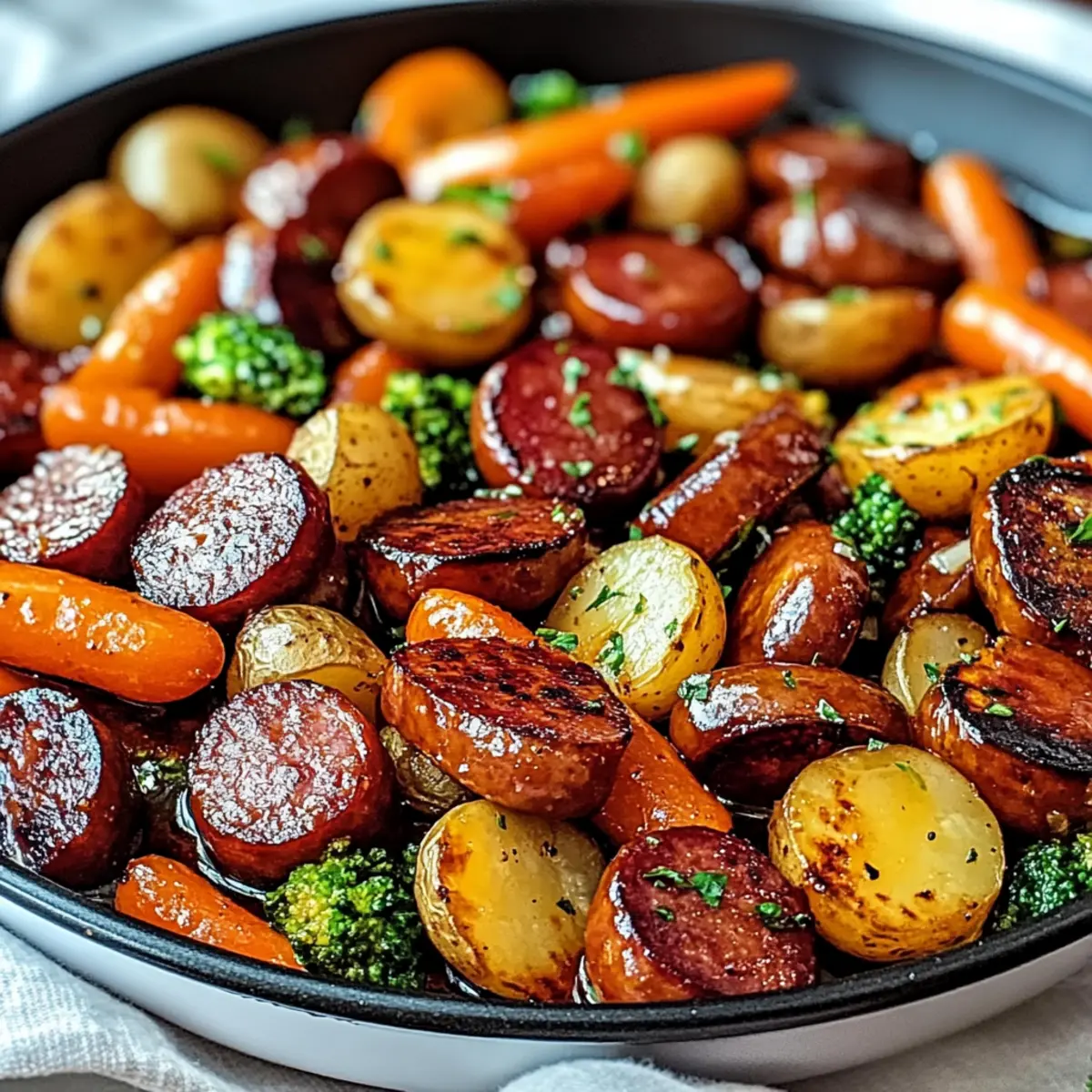 As I stood over the stove, a warm aroma filled the kitchen, bringing a nostalgic comfort that took me back to family dinners spent together. Today, I’m excited to share my One-Pan Honey Garlic Kielbasa & Veggies, a dish that effortlessly combines the sweet depth of honey, the punch of garlic, and the savory goodness of kielbasa with vibrant vegetables. It’s a lifesaver on those hectic weeknights when everyone’s craving a wholesome meal but time is tight. Not only is this recipe quick and easy to whip up, but it also requires minimal cleanup—perfect for busy families! Plus, with customizable ingredients, you can make it your own and cater to everyone’s tastes. Are you ready to create a delightful meal that brings your loved ones to the table?