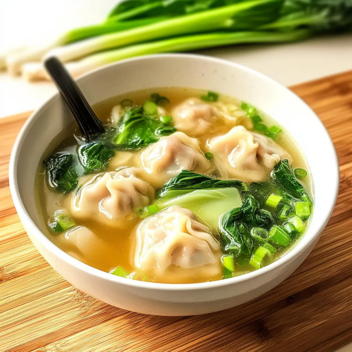 When the bok choy is tender, remove the pot from heat. Ladle the soup into bowls and garnish each serving with chopped green onions and a sprinkle of fried shallots for added crunch. Serve hot and enjoy the warmth and comfort of your homemade 15-Minute One Pot Wonton Soup, perfect for any chilly evening!