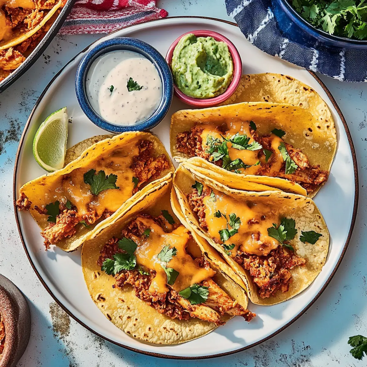 On one side of each tortilla, sprinkle a layer of cheese, then add a generous spoonful of the chicken mixture, followed by another sprinkle of cheese. Carefully fold the tortilla over the filling, ensuring it’s packed well. This layering gives the tacos delicious ooey-gooey goodness, essential for a great bite!