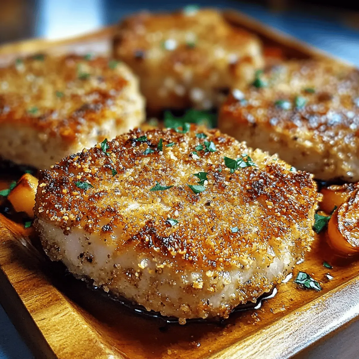 Once out of the oven, let your Easy Crispy Parmesan Baked Pork Chops rest for 5 minutes. This important step allows the juices to redistribute, ensuring every bite is tender and juicy. If desired, garnish with fresh parsley for a pop of color and added flavor before serving.
