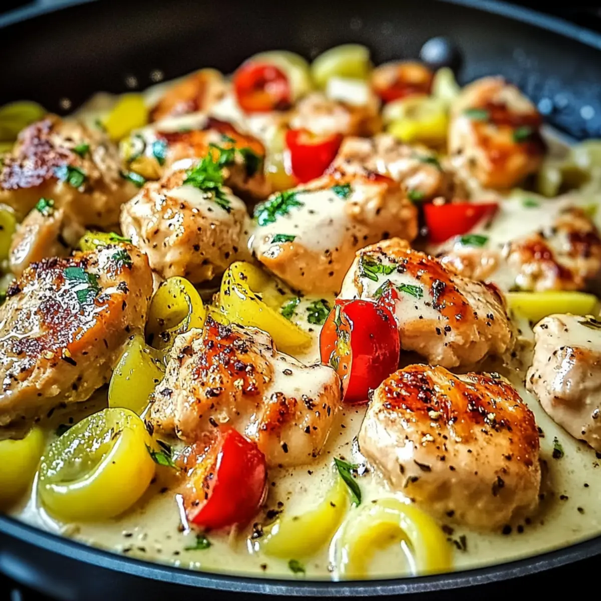 A delightful one-pan meal featuring tender chicken, creamy pepperoncini sauce, and customizable flavors for a satisfying weeknight dinner.