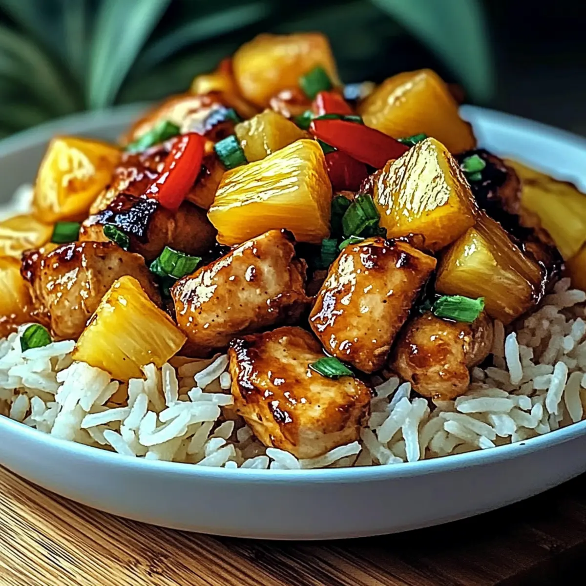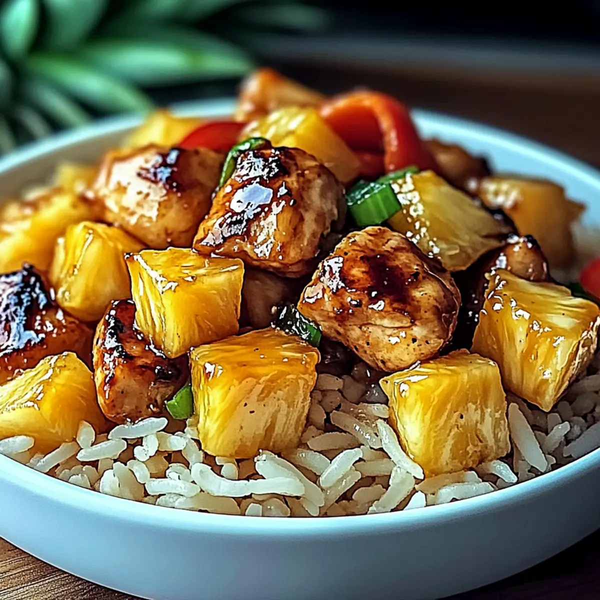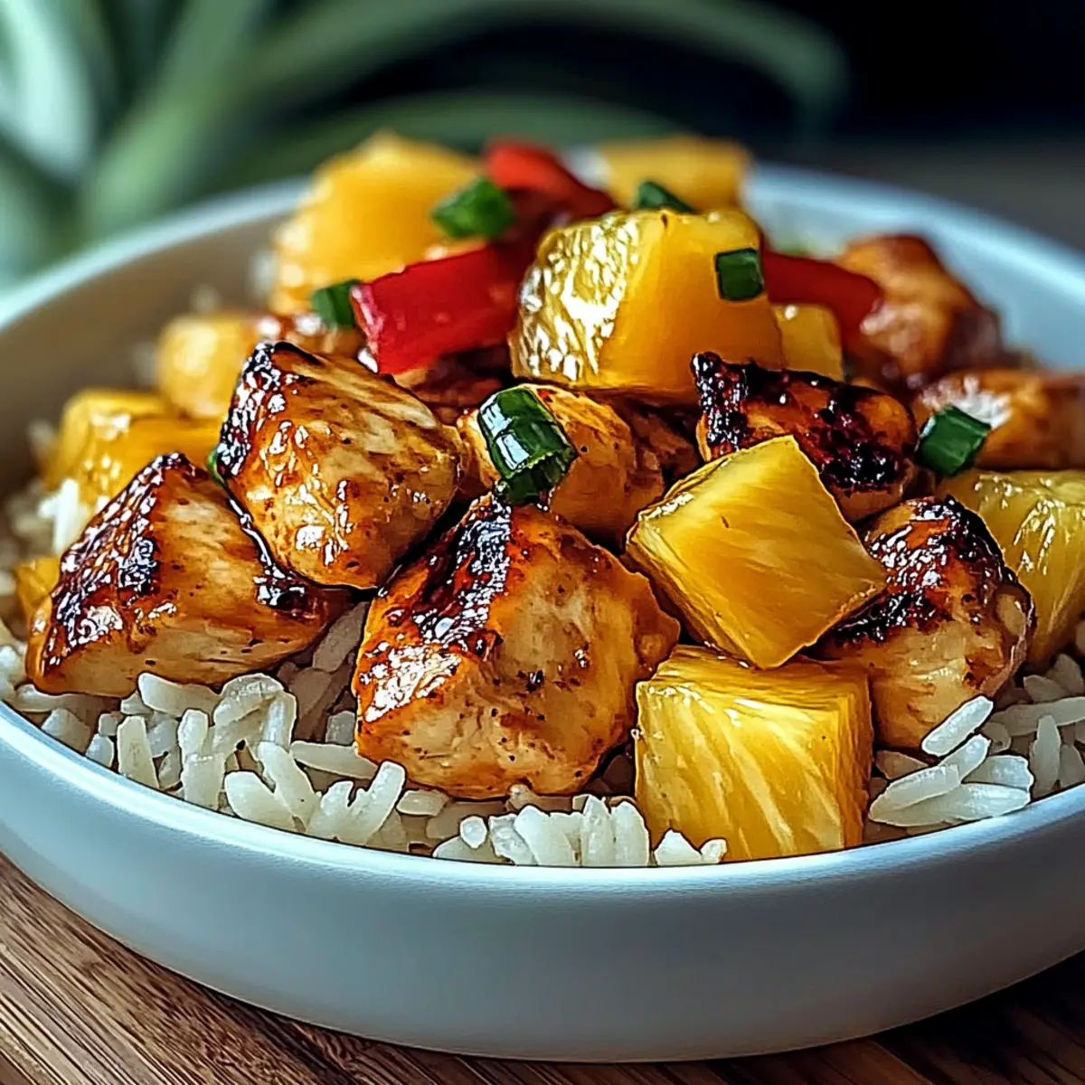 Tropical Delight: The juicy pineapple infuses a refreshing sweetness, perfectly balancing the savory chicken.