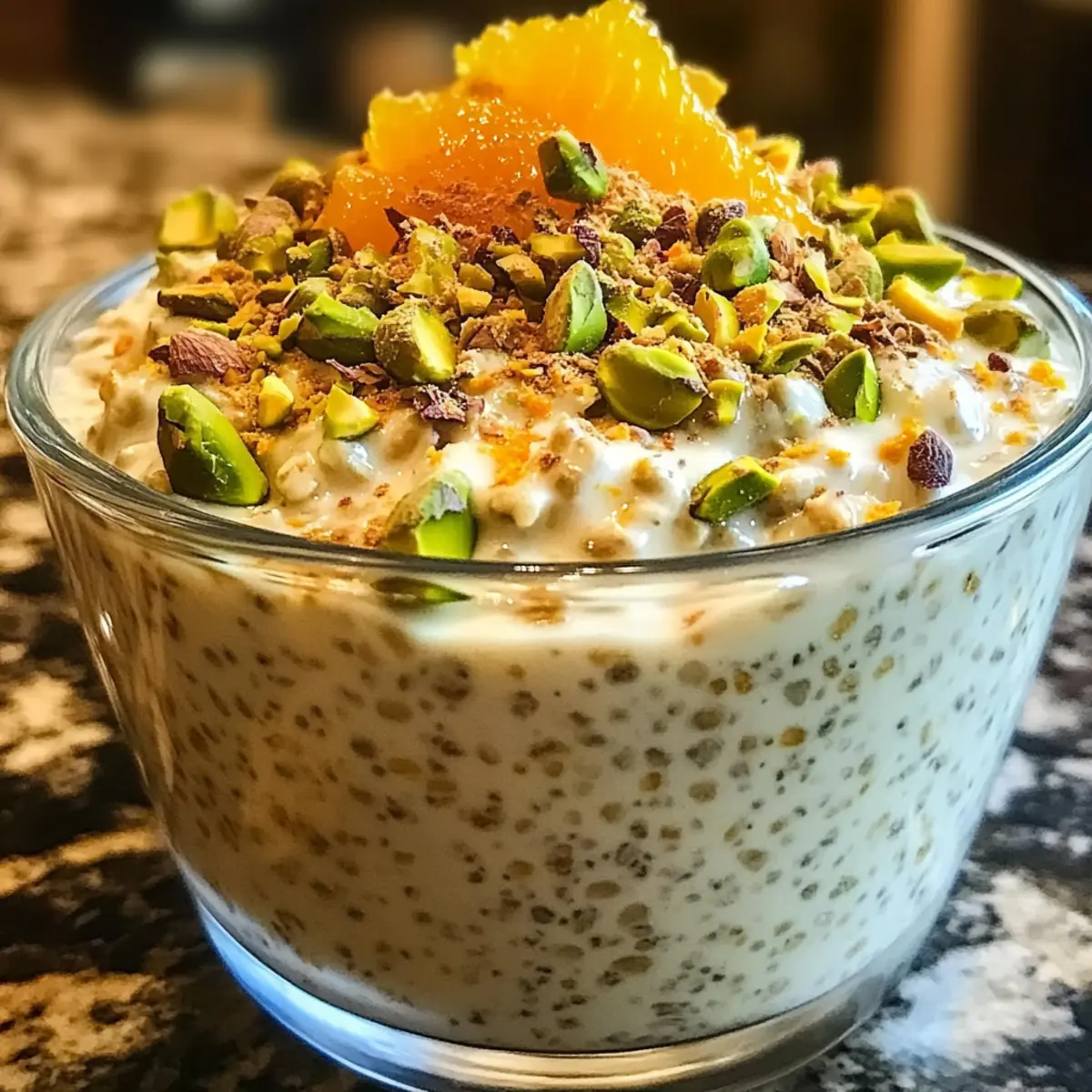 - Serve topped with fresh orange segments and additional chopped pistachios.