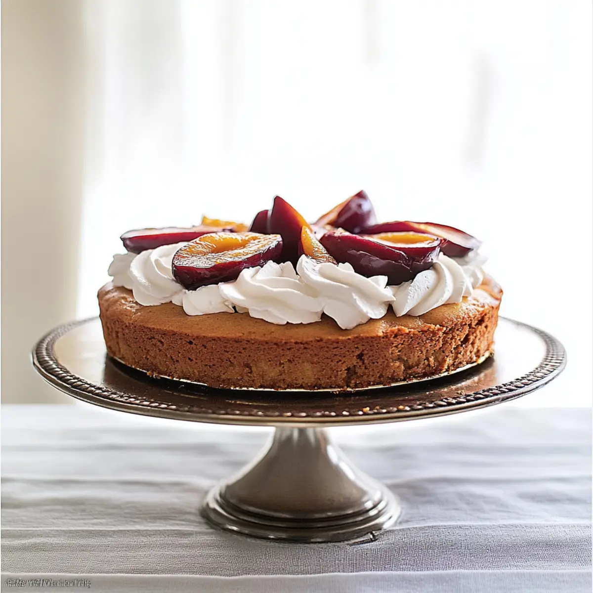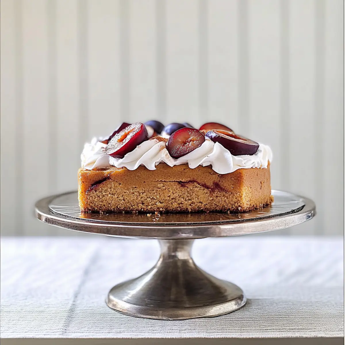 Slice your beautifully baked Spiced Plum Cake, then serve it warm with a generous dollop of the whipped yogurt topping. This harmonious combination creates a cozy and inviting dessert, perfect for gatherings or a charming evening treat. Sit back and enjoy the delightful smiles that this cake brings to your table!