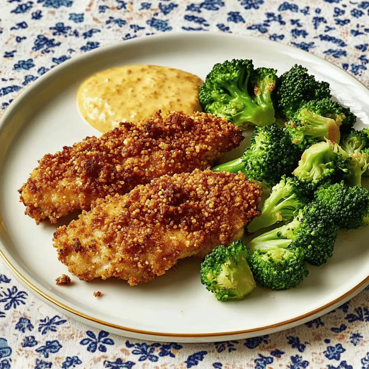 Once the chicken is perfectly cooked and the broccoli is steamed, arrange both on plates. Consider serving any remaining honey-mustard sauce on the side for dipping. Your Pretzel-Crusted Chicken with vibrant broccoli is now ready to enjoy, offering a delightful crunch and juicy flavor that the whole family will love!