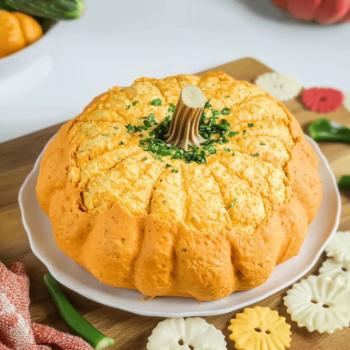Serving After Storage: Serve chilled with fresh dippers to bring back the vibrant flavors of your Pumpkin Shaped Cheese Ball!