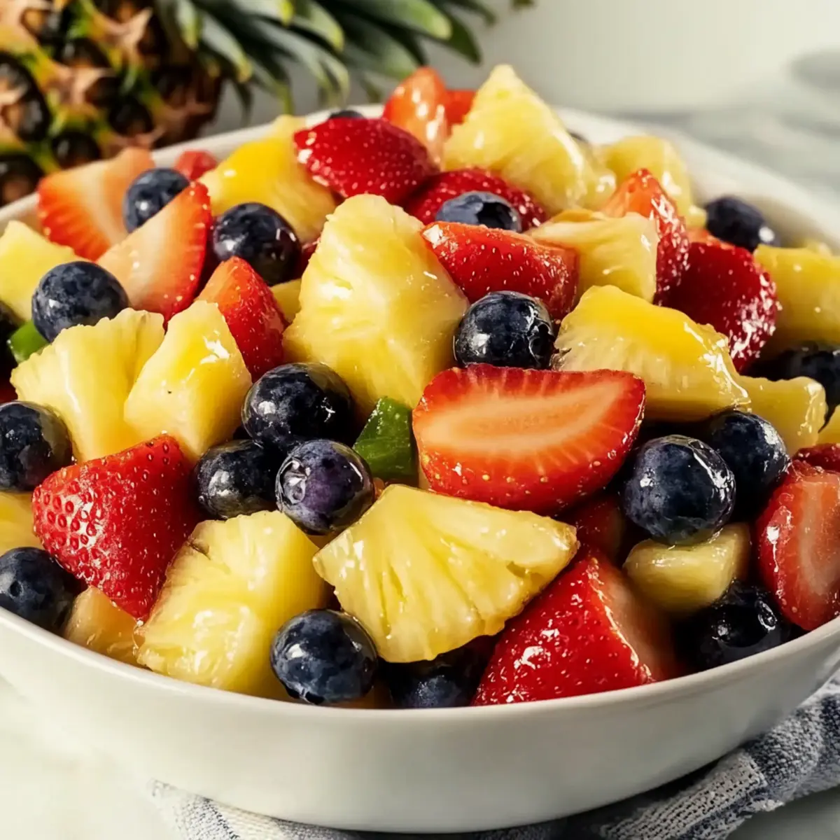 Vibrant Colors: This fruit salad is a feast for the eyes, showcasing a rainbow of seasonal fruits that are perfect for summer gatherings.